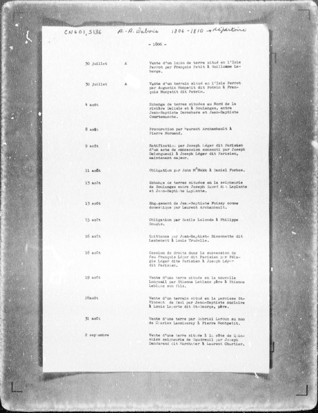 Antoine-Alexis Dubois, 1806-1852, Archives nationales à Montréal, Fonds Cour supérieure. District judiciaire de Montréal. Greffes de notaires, (06M,CN601,S136).