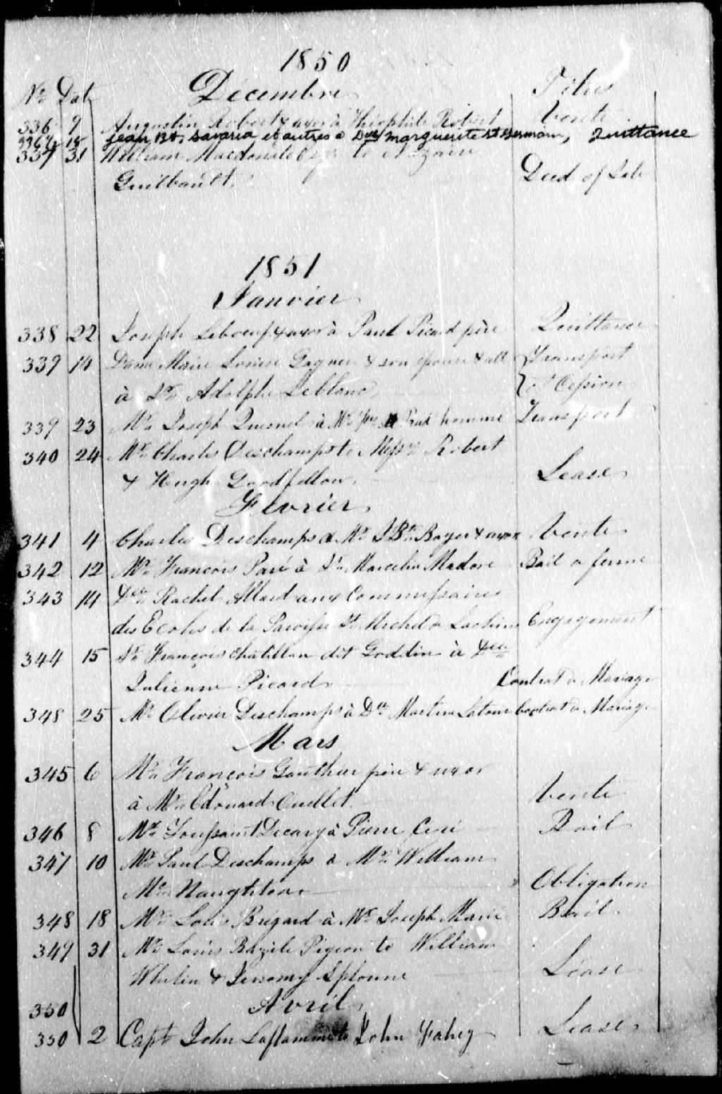 Joseph Dubreuil, 1840-1875, Archives nationales à Montréal, Fonds Cour supérieure. District judiciaire de Montréal. Greffes de notaires, (06M,CN601,S137).