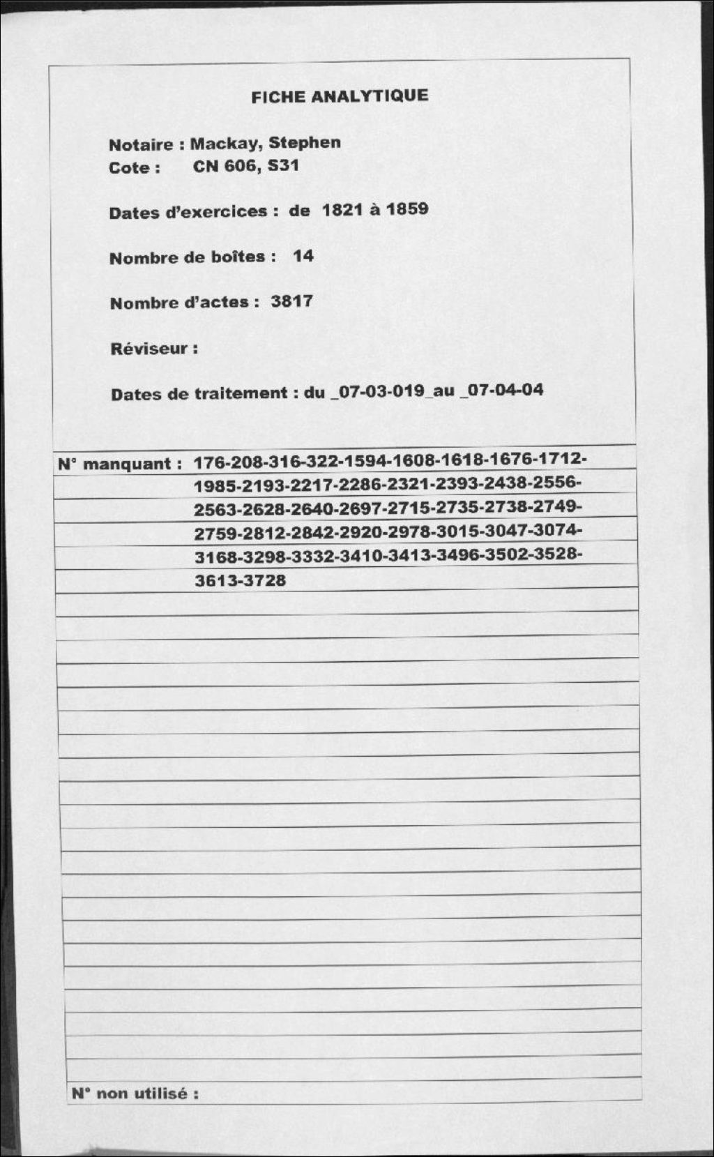 Stephen Mackay, 1821-1859, Archives nationales à Montréal, Fonds Cour supérieure. District judiciaire de Terrebonne. Greffes de notaires, (06M,CN606,S31).