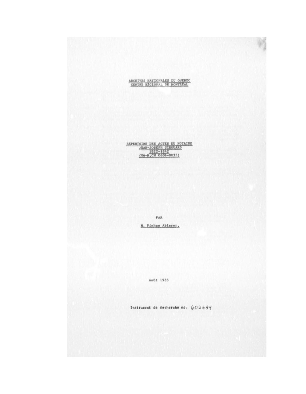Jean-Joseph Girouard, 1816-1849, Archives nationales à Montréal, Fonds Cour supérieure. District judiciaire de Terrebonne. Greffes de notaires, (06M,CN606,S35).