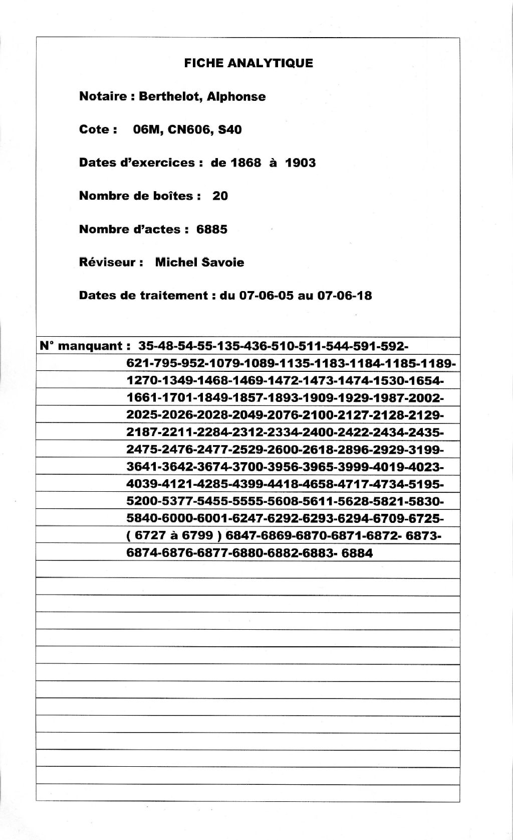 Alphonse Berthelot, 1868-1903, Archives nationales à Montréal, Fonds Cour supérieure. District judiciaire de Terrebonne. Greffes de notaires, (06M,CN606,S40).