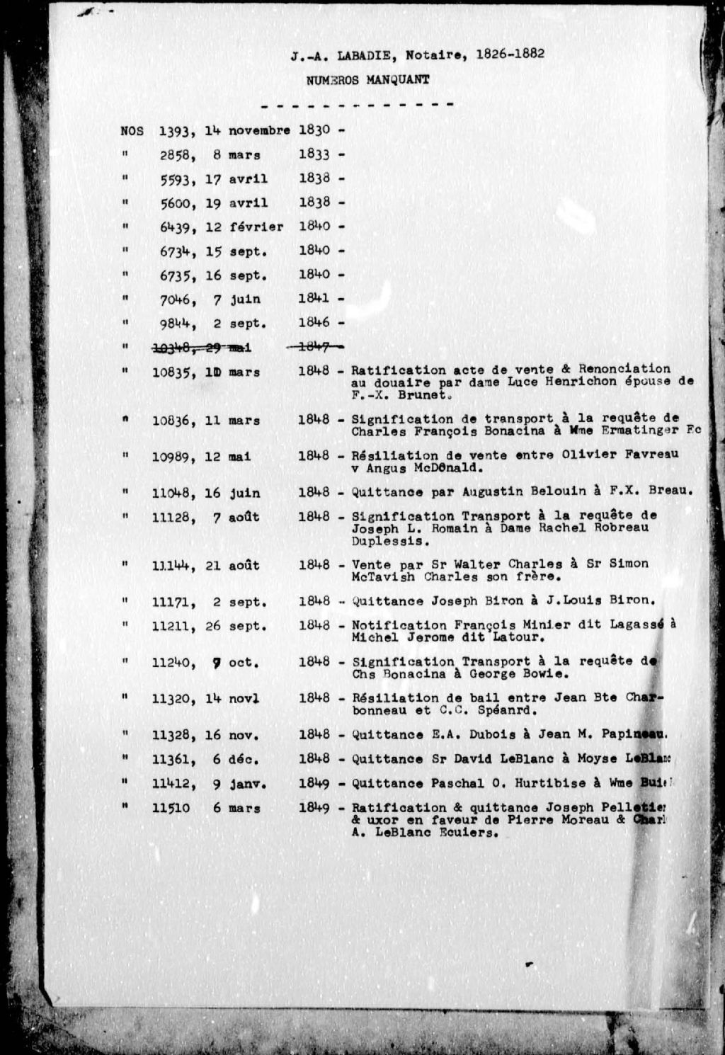 Joseph-Augustin Labadie, 1826-1882, Archives nationales à Montréal, Fonds Cour supérieure. District judiciaire de Montréal. Greffes de notaires, (06M,CN601,S219).
