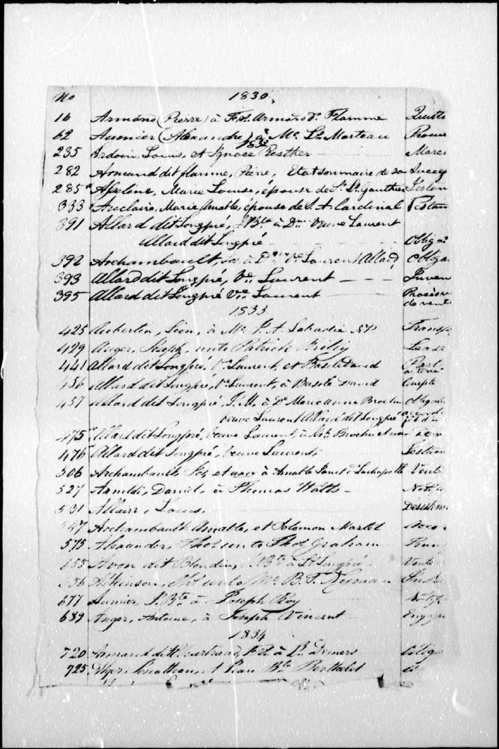 Joseph Belle, 1830-1869, Archives nationales à Montréal, Fonds Cour supérieure. District judiciaire de Montréal. Greffes de notaires, (06M,CN601,S32).