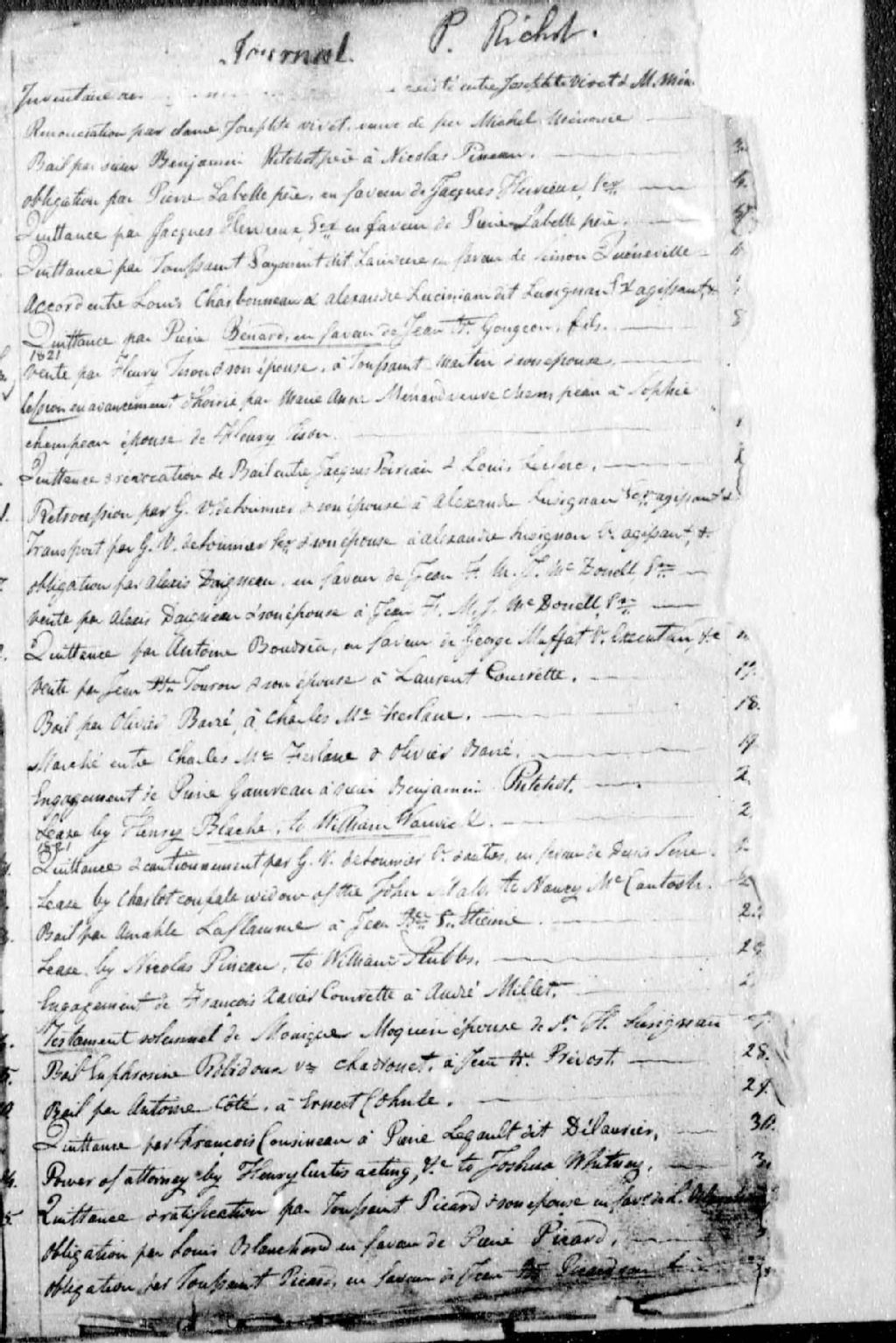 Pierre Ritchot, 1821-1831, Archives nationales à Montréal, Fonds Cour supérieure. District judiciaire de Montréal. Greffes de notaires, (06M,CN601,S348).