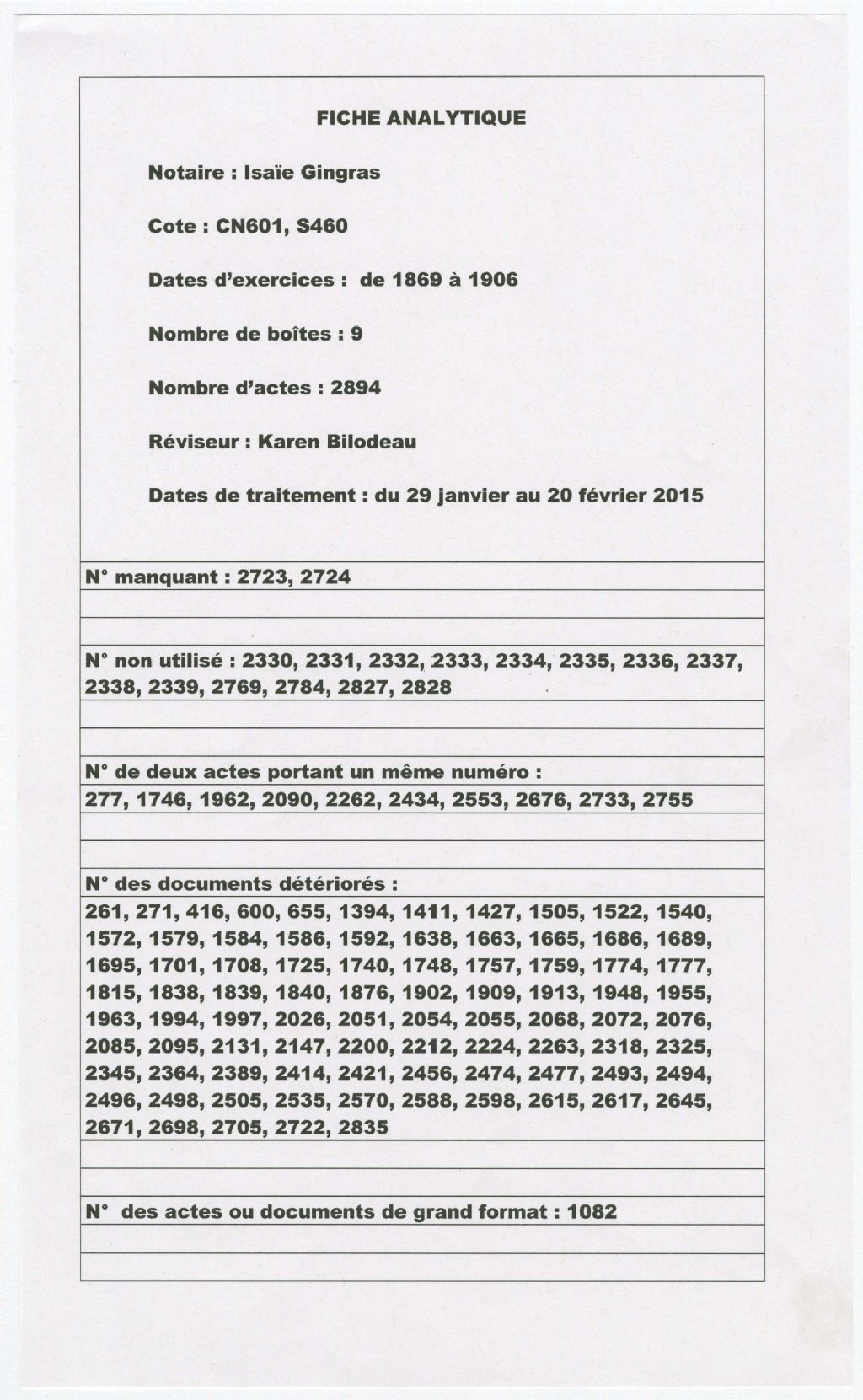 Isaïe Gingras, 1869-1906, Archives nationales à Montréal, Fonds Cour supérieure. District judiciaire de Montréal. Greffes de notaires, (06M,CN601,S460).