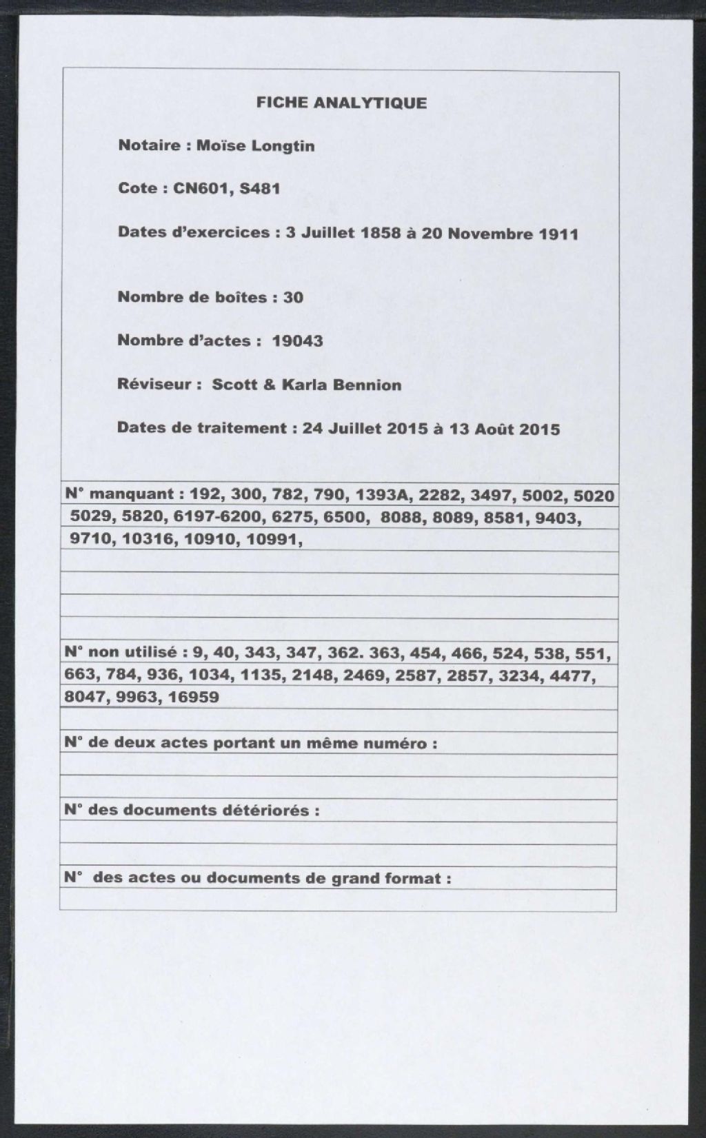 Moïse Longtin, 1858-1911, Archives nationales à Montréal, Fonds Cour supérieure. District judiciaire de Montréal. Greffes de notaires, (06M,CN601,S481).