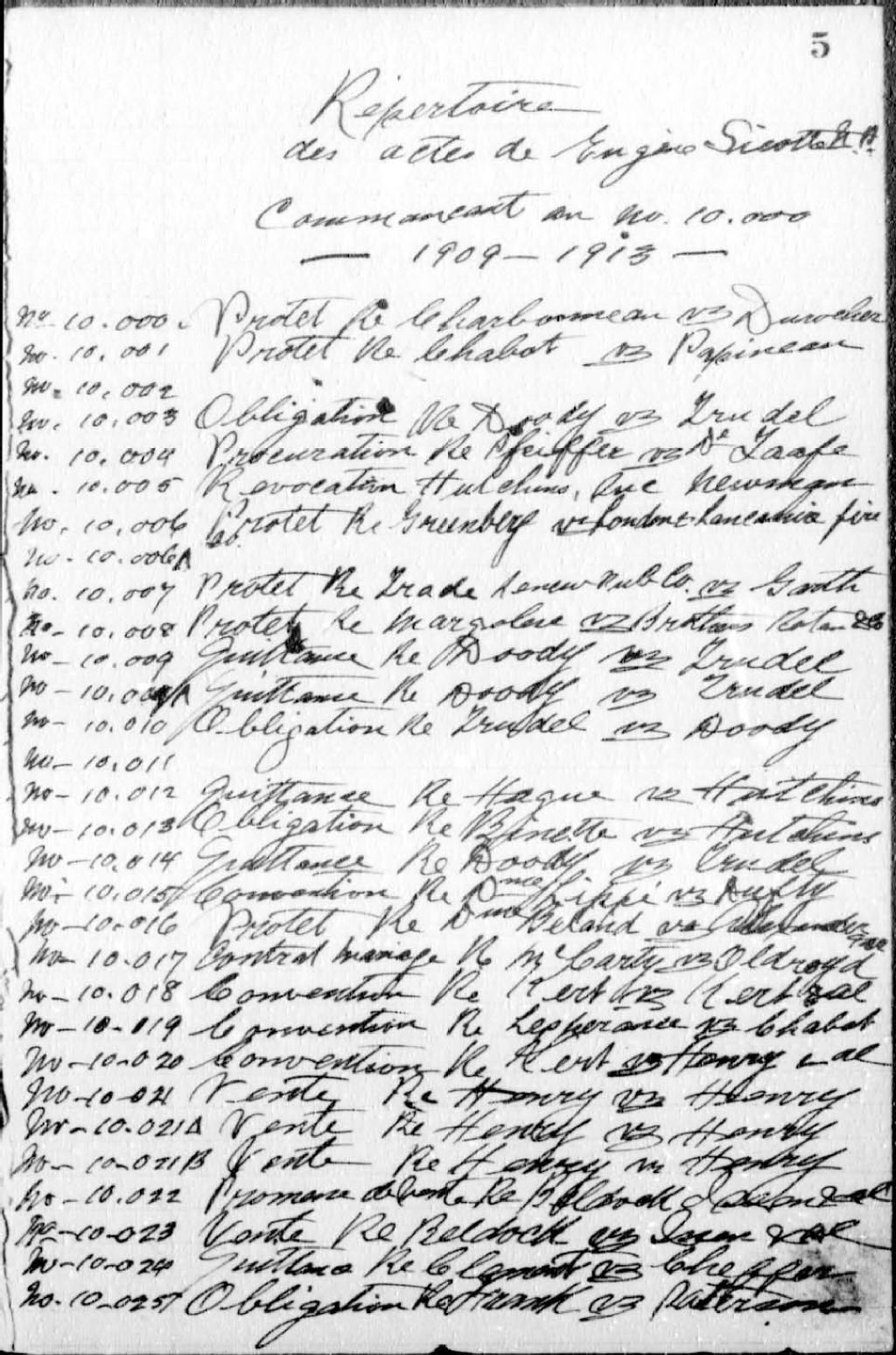 Eugène Sicotte, 1909-1913, Archives nationales à Montréal, Fonds Cour supérieure. District judiciaire de Montréal. Greffes de notaires, (06M,CN601,S518).