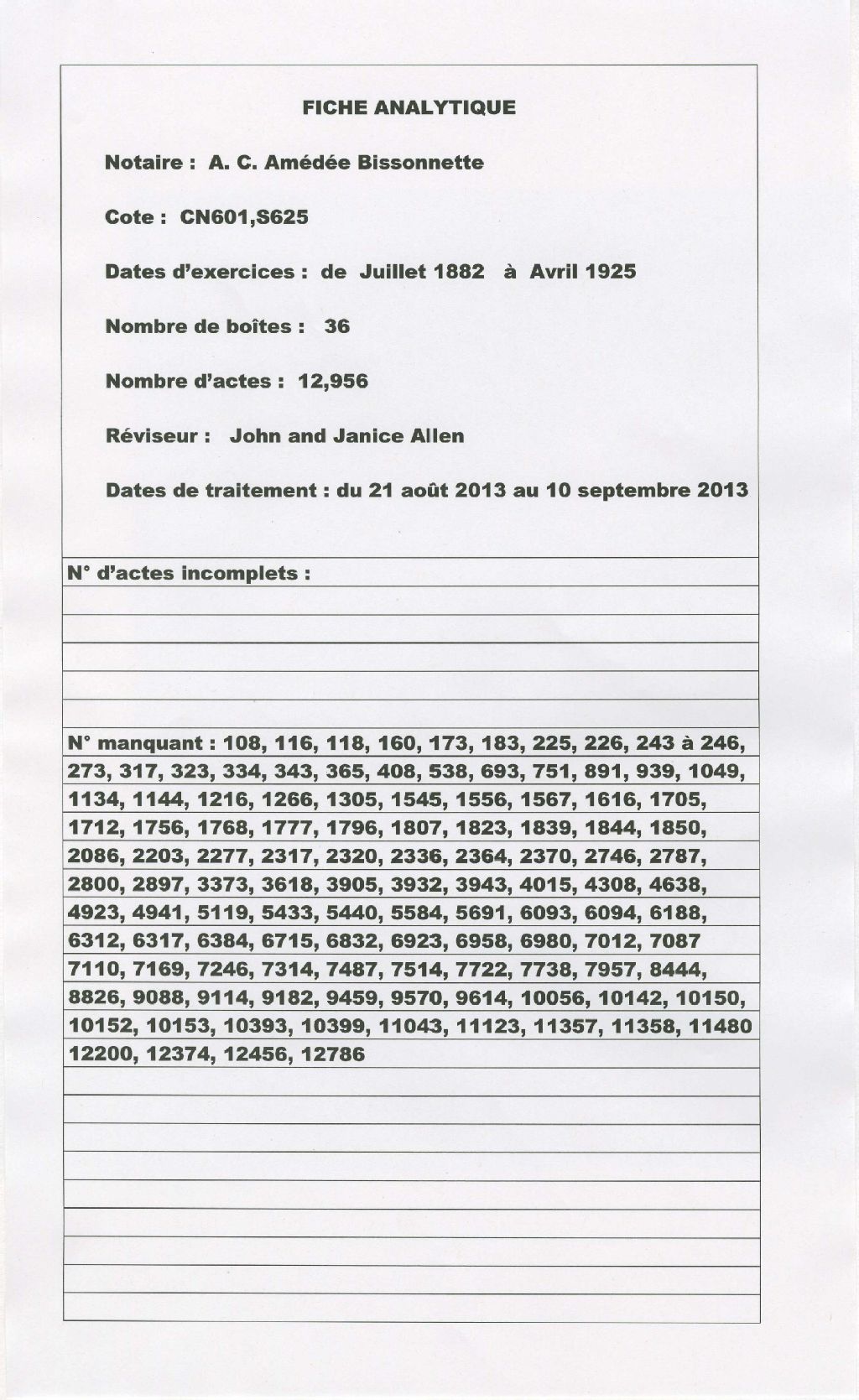 Achille Cléophile Amédée Bissonnette, 1882-1925, Archives nationales à Montréal, Fonds Cour supérieure. District judiciaire de Montréal. Greffes de notaires, (06M,CN601,S625).