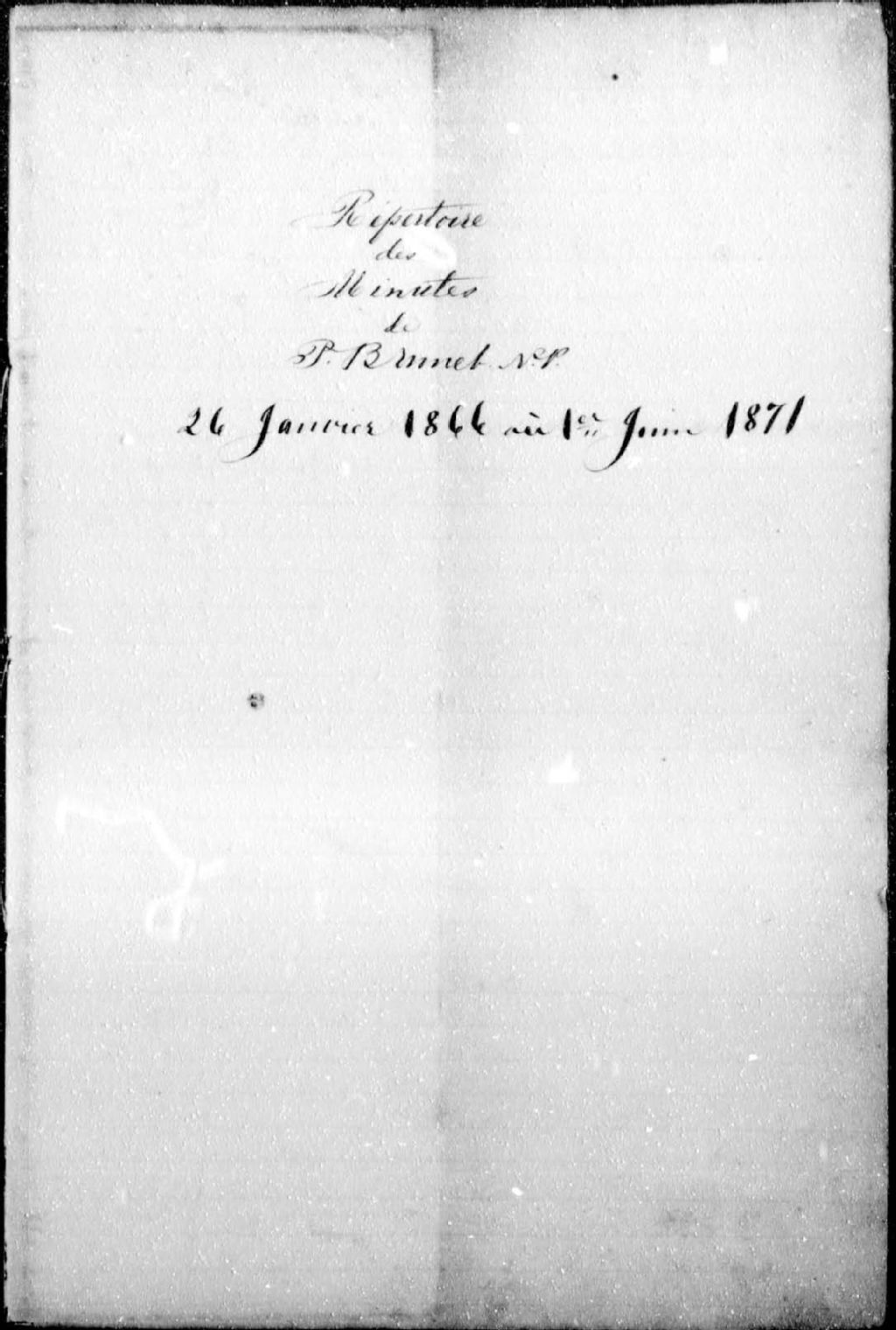 Pascal Brunet, 1866-1871, Archives nationales à Montréal, Fonds Cour supérieure. District judiciaire de Montréal. Greffes de notaires, (06M,CN601,S64).