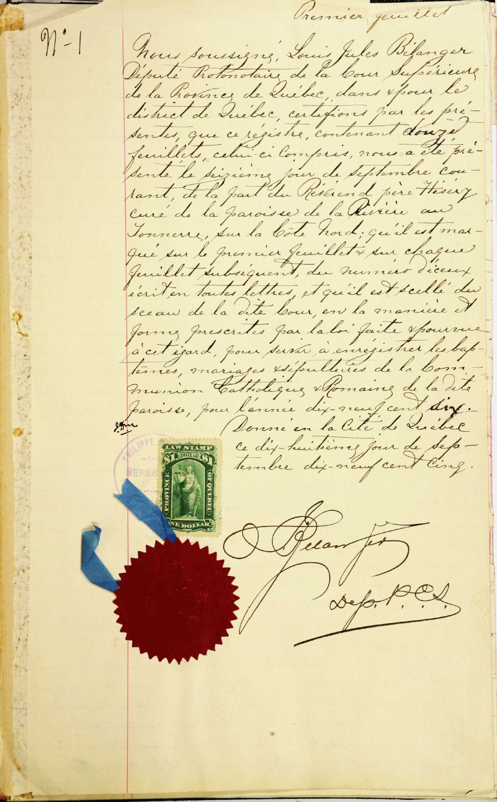 Saint-Hippolyte de Rivière-au-Tonnerre, 1898-1922, Archives nationales à Sept-Îles, Fonds Cour supérieure. District judiciaire de Mingan. Etat civil, (09N,CE901,S12).