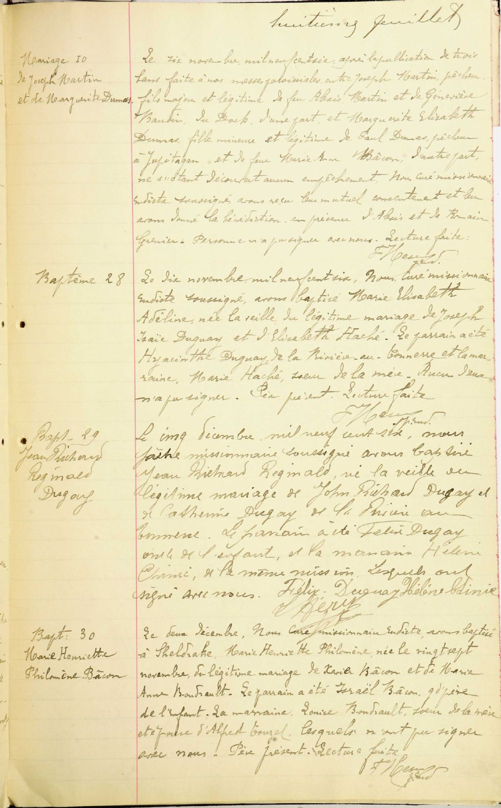 Actes de baptême, mariage et sépulture de la paroisse de Saint-Hyppolite de Rivière-au-Tonnerre et des missions environnantes.