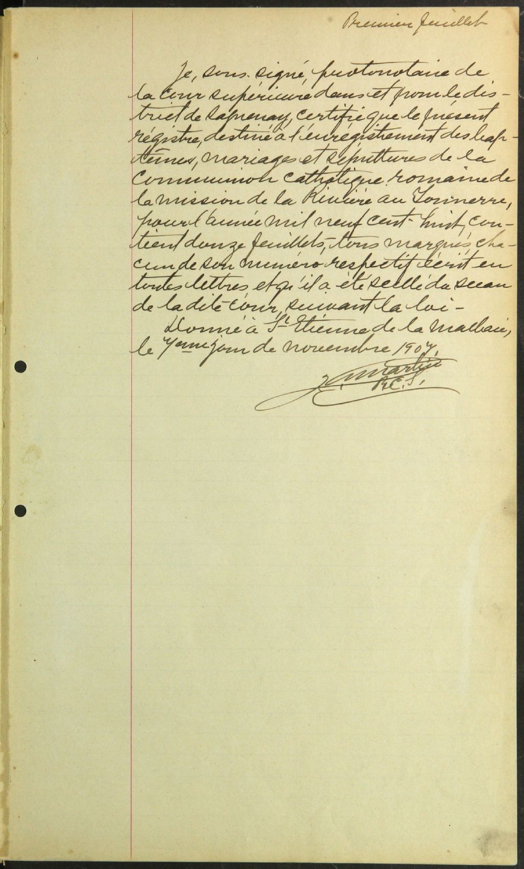Saint-Hippolyte de Rivière-au-Tonnerre, 1898-1922, Archives nationales à Sept-Îles, Fonds Cour supérieure. District judiciaire de Mingan. Etat civil, (09N,CE901,S12).