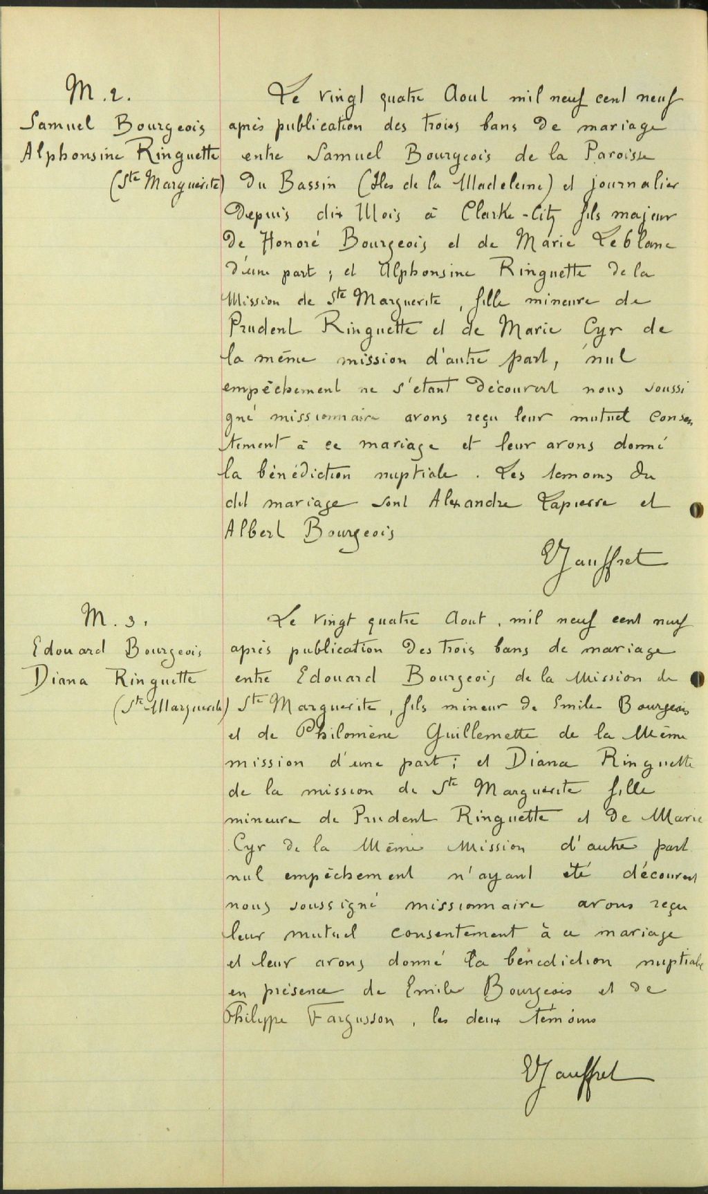 Saint-Cœur-de-Marie de Clarke City, 1908-1922, Archives nationales à Sept-Îles, Fonds Cour supérieure. District judiciaire de Mingan. Etat civil, (09N,CE901,S16).