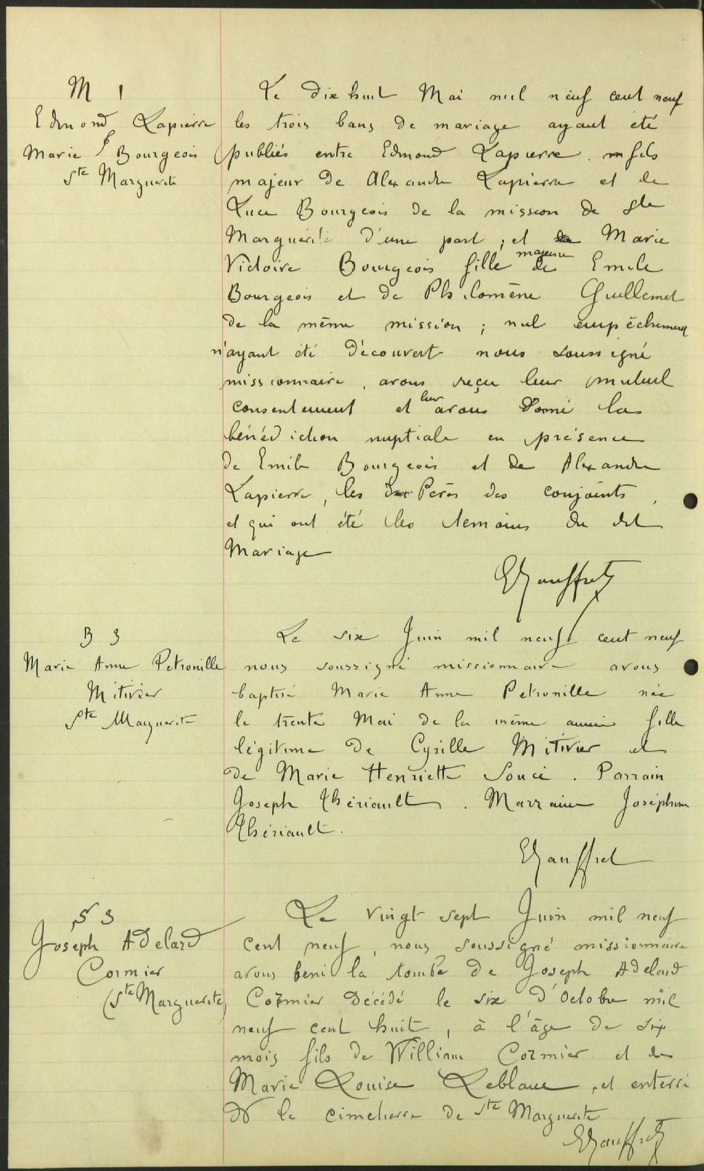 Saint-Cœur-de-Marie de Clarke City, 1908-1922, Archives nationales à Sept-Îles, Fonds Cour supérieure. District judiciaire de Mingan. Etat civil, (09N,CE901,S16).