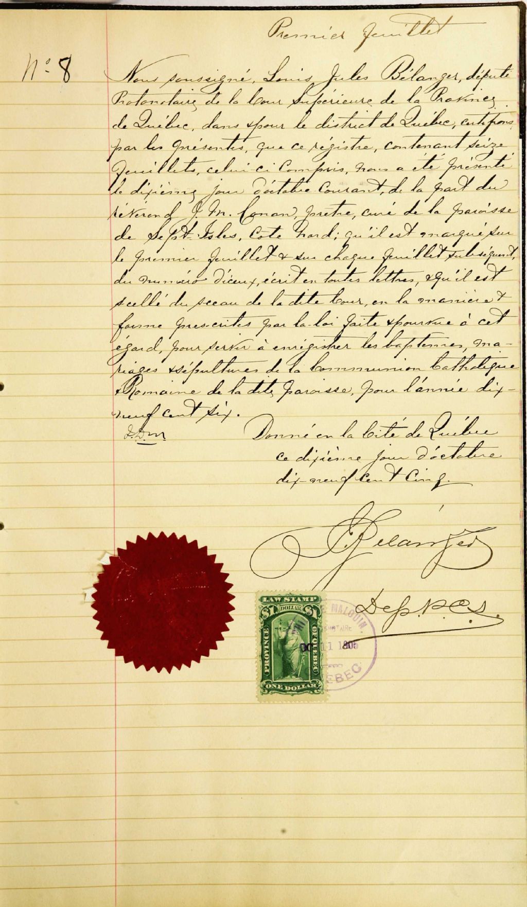 Saint-Joseph de Sept-Îles, 1884-1922, Archives nationales à Sept-Îles, Fonds Cour supérieure. District judiciaire de Mingan. Etat civil, (09N,CE901,S11).