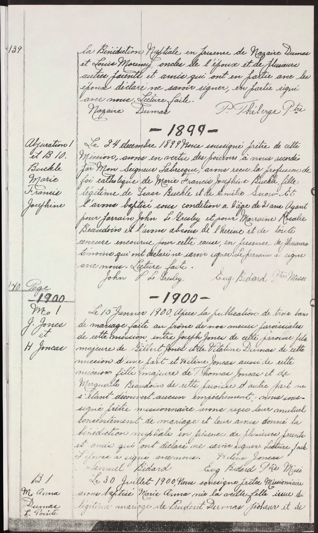 Notre-Dame-de-Lourdes-de-Blanc-Sablon, 1899-1922, Archives nationales à Sept-Îles, Fonds Cour supérieure. District judiciaire de Mingan. Etat civil, (09N,CE901,S19).