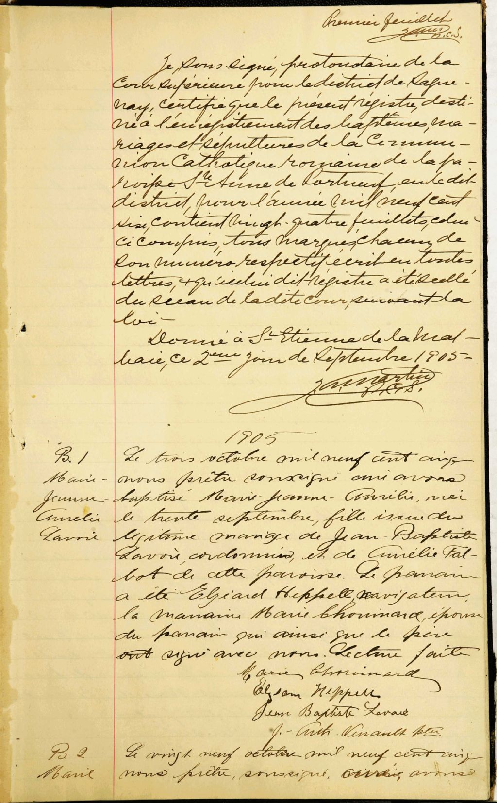 Sainte-Anne-de-Portneuf, 1906-1908, Archives nationales à Sept-Îles, Fonds Cour supérieure. District judiciaire de Baie-Comeau. État civil, (09N,CE902,S10).