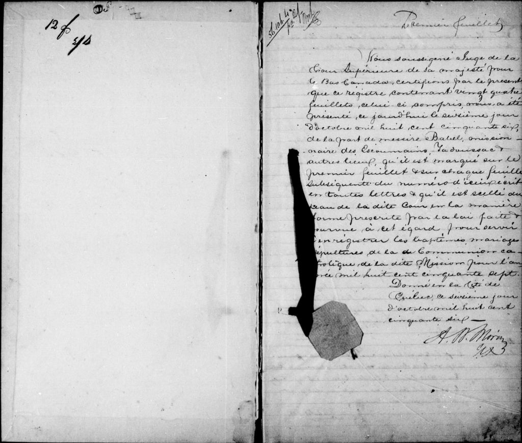 Saint-Marcellin des Escoumins, 1849-1922, Archives nationales à Sept-Îles, Fonds Cour supérieure. District judiciaire de Baie-Comeau. État civil, (09N,CE902,S1).