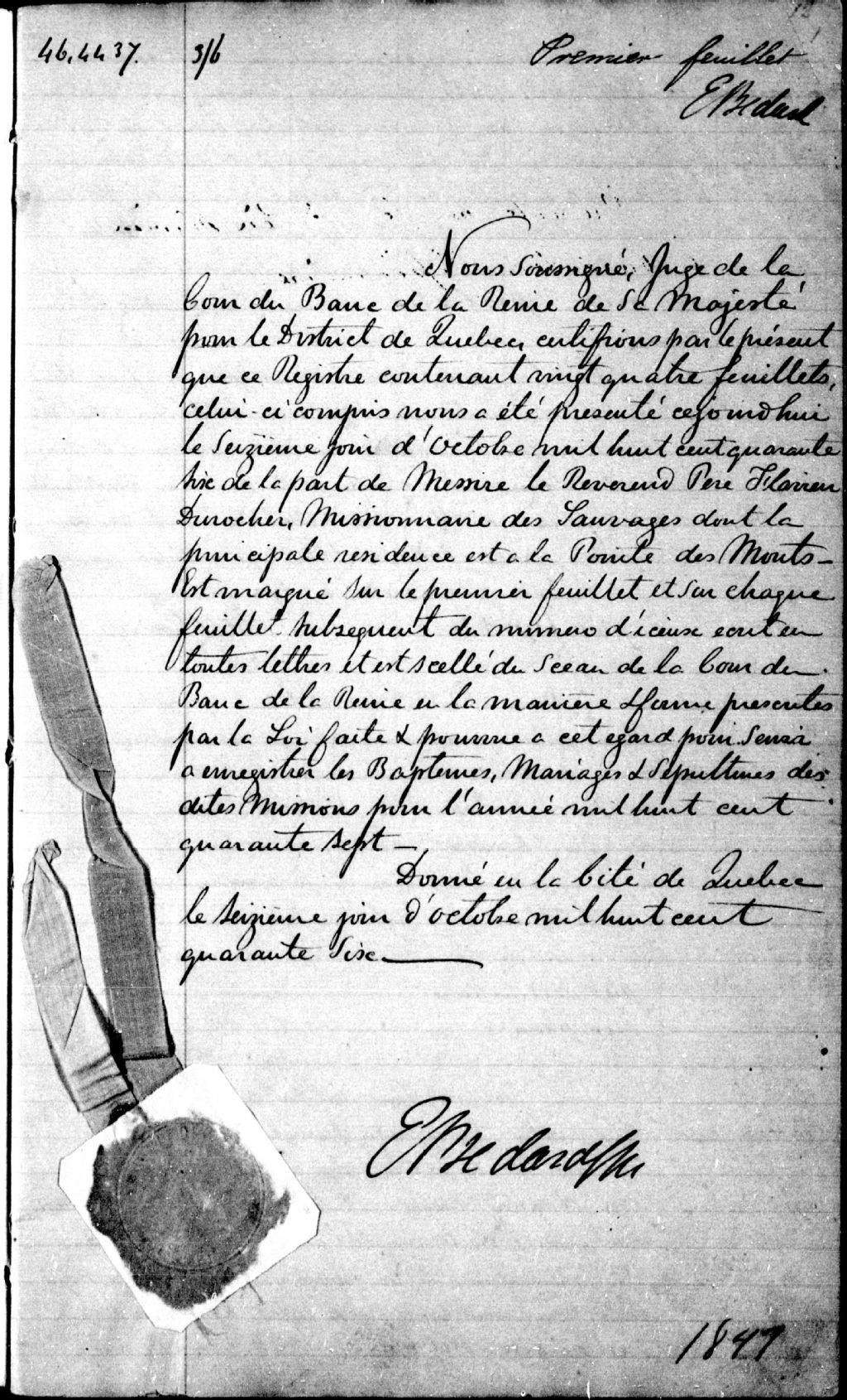 - Actes de baptême, mariage et sépulture de membres de la communauté innue, naskapie et canadienne des missions de Tadoussac, Escoumins, Bon-Désir, Portneuf, Sault-au-Cochon, Îlets-Caribou, Îlets-Jérémie, Godbout, Sept-Îles, Mingan (Ekuanitshit) et Musquaro.