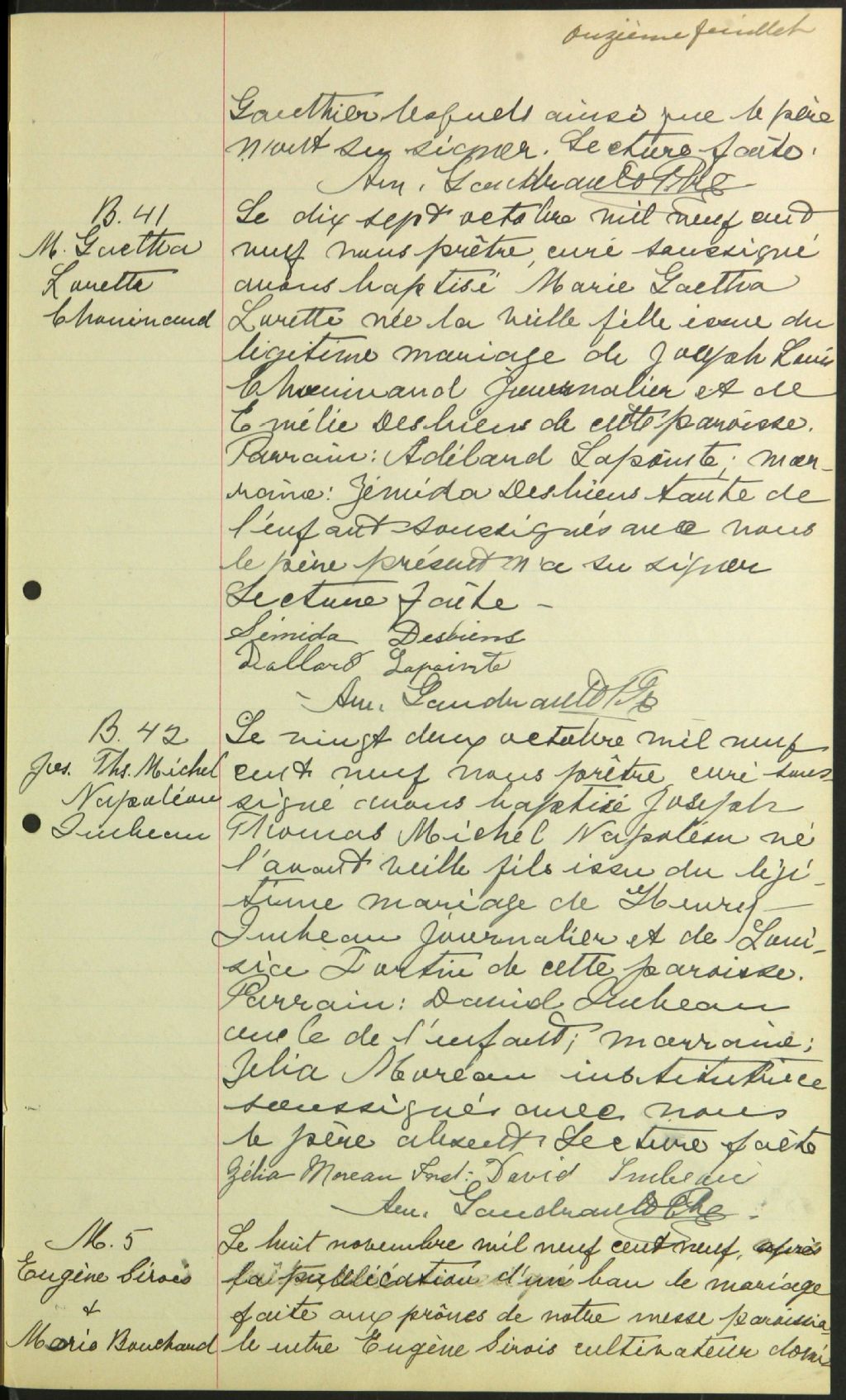 Les Bergeronnes, 1889-1922, Archives nationales à Sept-Îles, Fonds Cour supérieure. District judiciaire de Baie-Comeau. État civil, (09N,CE902,S8).