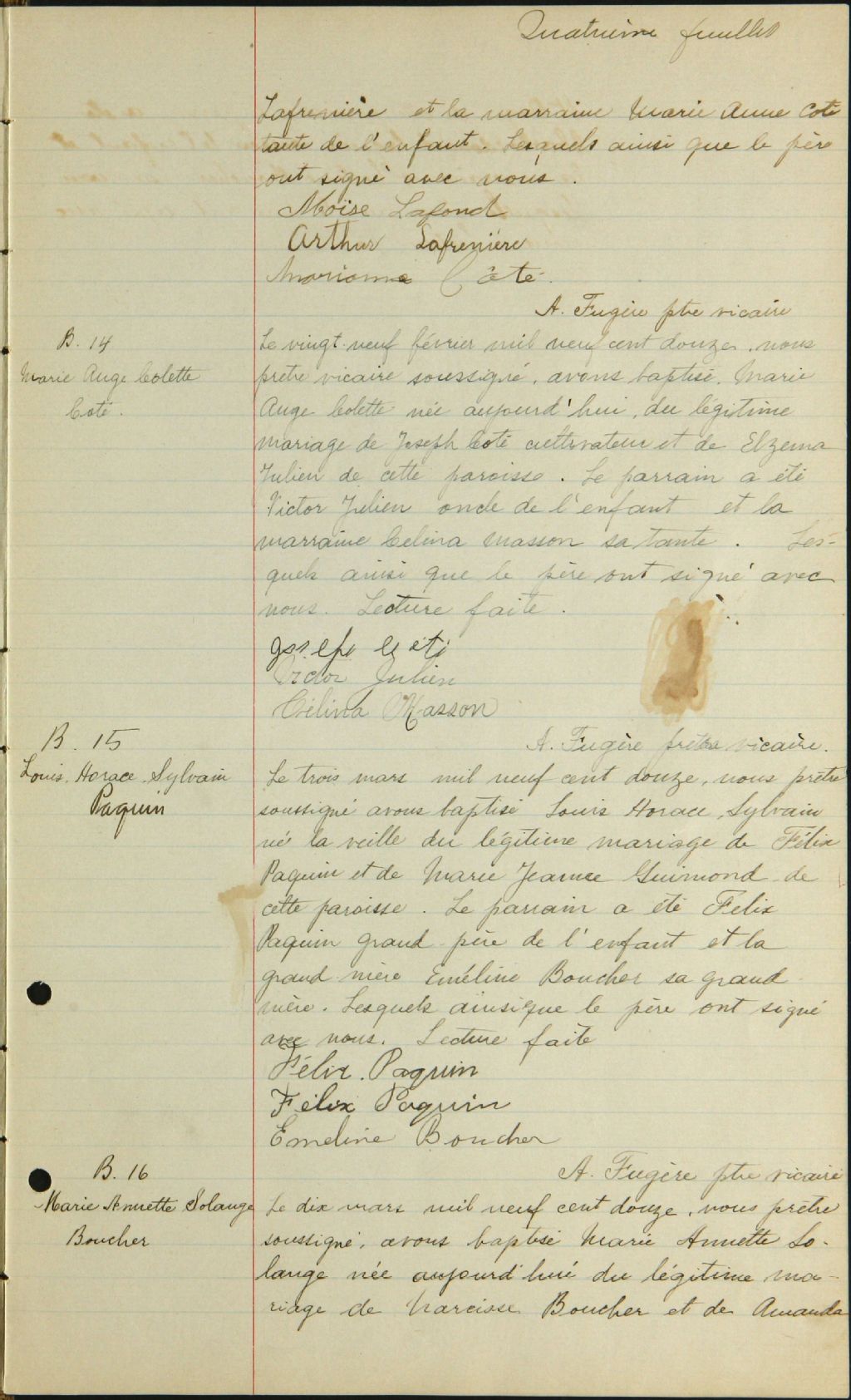 Saint-Bruno-de-Guigues, 1906-1918, Archives nationales à Rouyn-Noranda, Fonds Cour supérieure. District judiciaire de Témiscamingue. État civil, (08Y,CE802,S4).