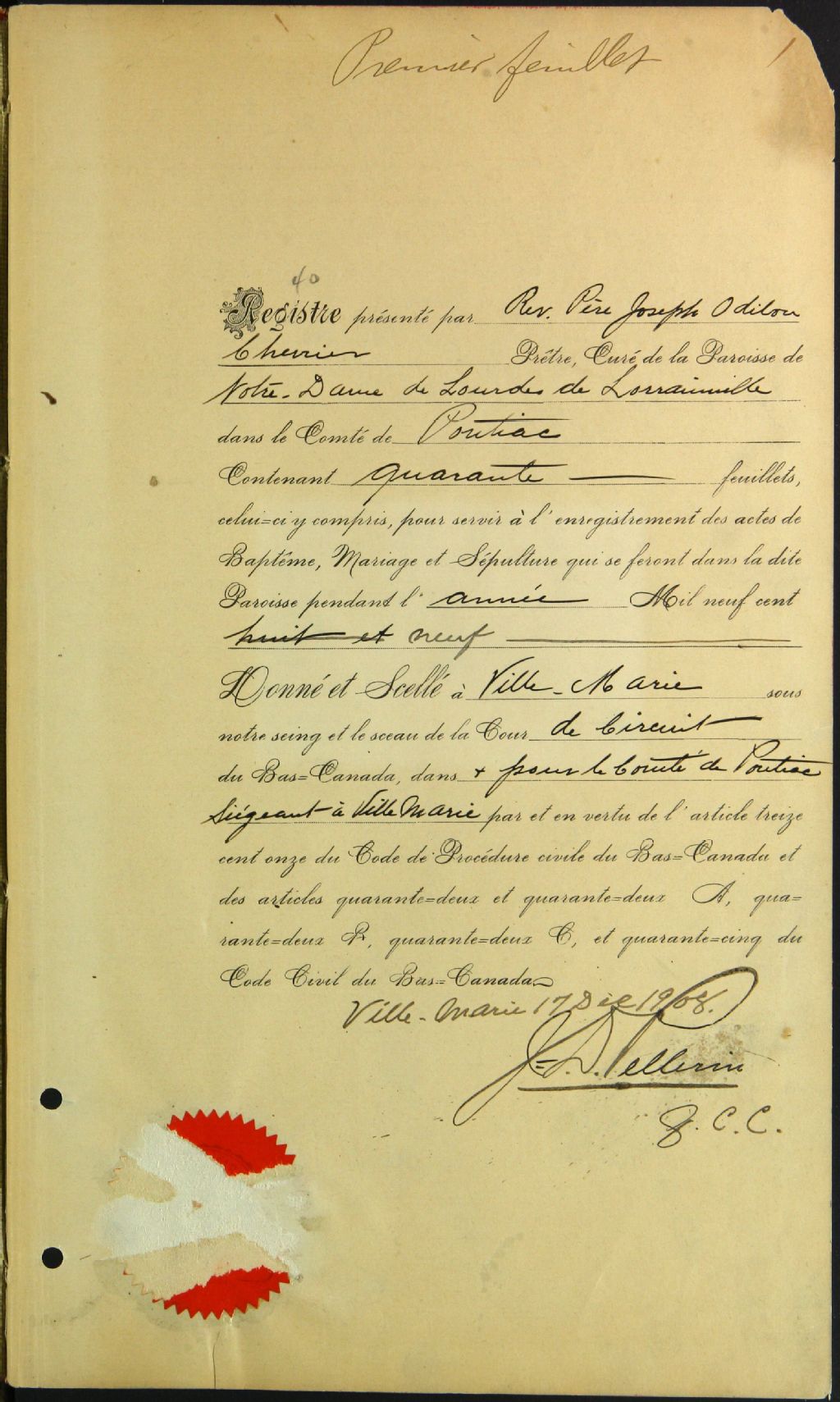 Notre-Dame-de-Lourdes-de-Lorrainville, 1909-1918, Archives nationales à Rouyn-Noranda, Fonds Cour supérieure. District judiciaire de Témiscamingue. État civil, (08Y,CE802,S5).