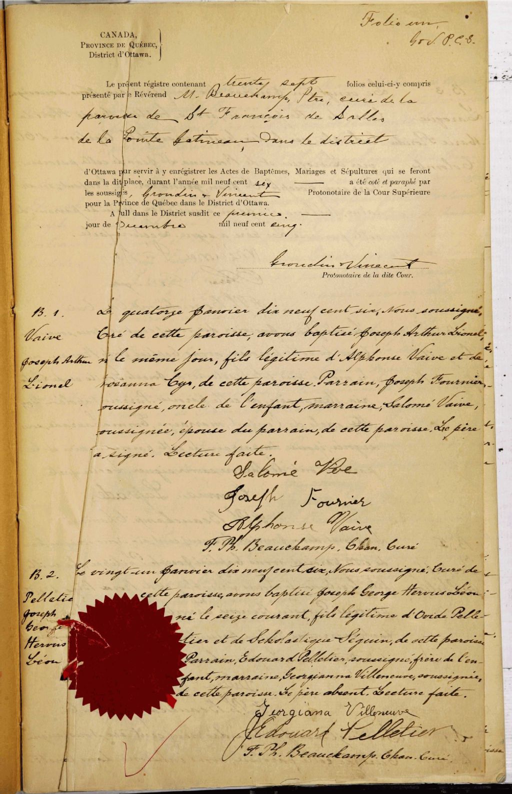 Saint-François-de-Sales-de-Templeton, 1900-1921, Archives nationales à Gatineau, Fonds Cour supérieure. District judiciaire de Hull. État civil, (07H,CE701,S10).