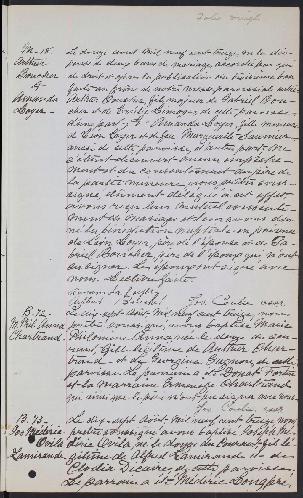 Saint-Paul-d'Aylmer, 1900-1921, Archives nationales à Gatineau, Fonds Cour supérieure. District judiciaire de Hull. État civil, (07H,CE701,S12).