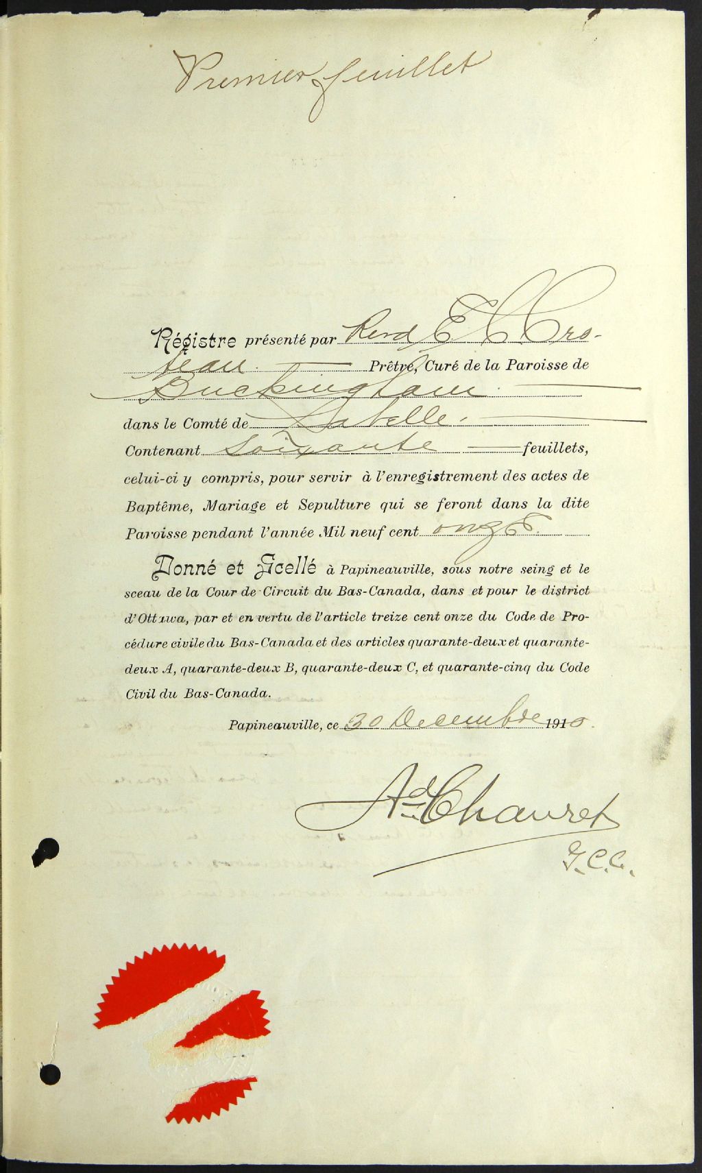 Saint-Grégoire-de-Nazianze-de-Buckingham, 1900-1921, Archives nationales à Gatineau, Fonds Cour supérieure. District judiciaire de Hull. État civil, (07H,CE701,S14).