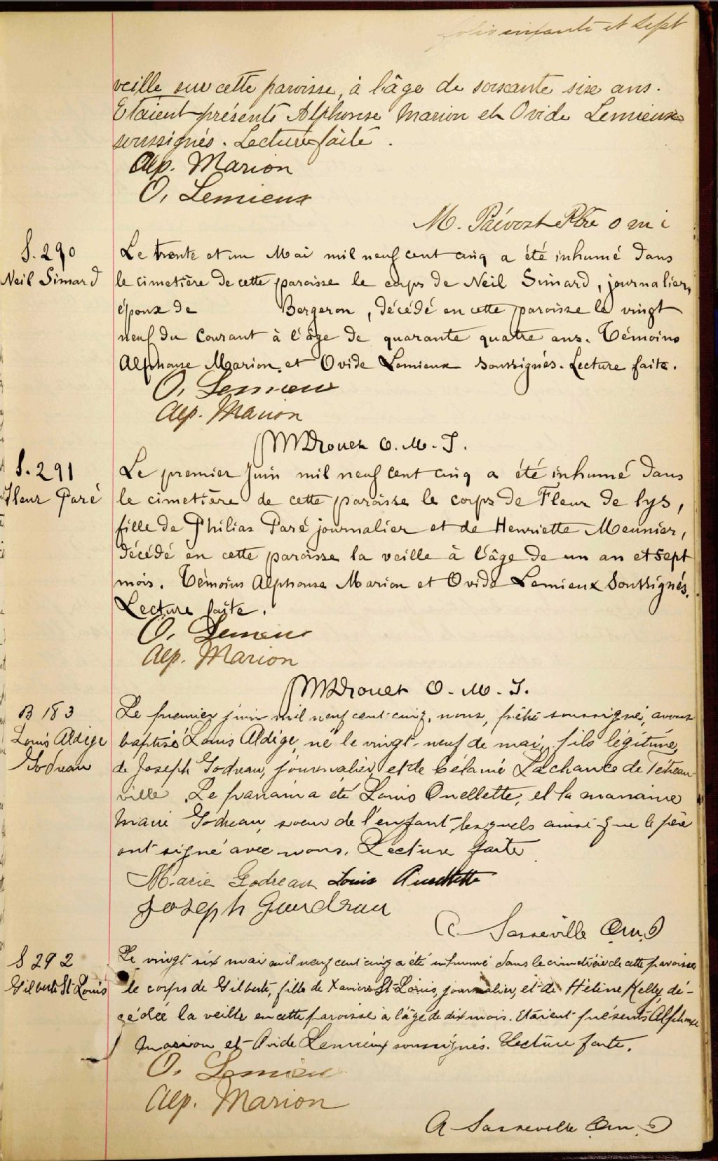 Notre-Dame-de-Grâce-de-Hull, 1900-1921, Archives nationales à Gatineau, Fonds Cour supérieure. District judiciaire de Hull. État civil, (07H,CE701,S18).
