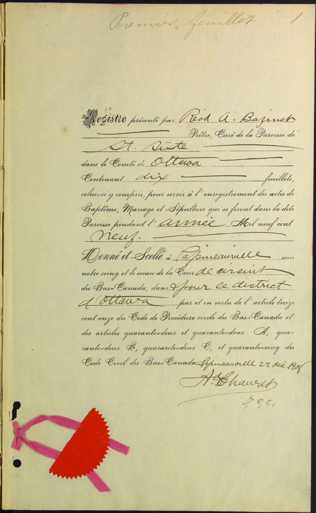 Saint-Sixte, 1891-1921, Archives nationales à Gatineau, Fonds Cour supérieure. District judiciaire de Hull. État civil, (07H,CE701,S20).