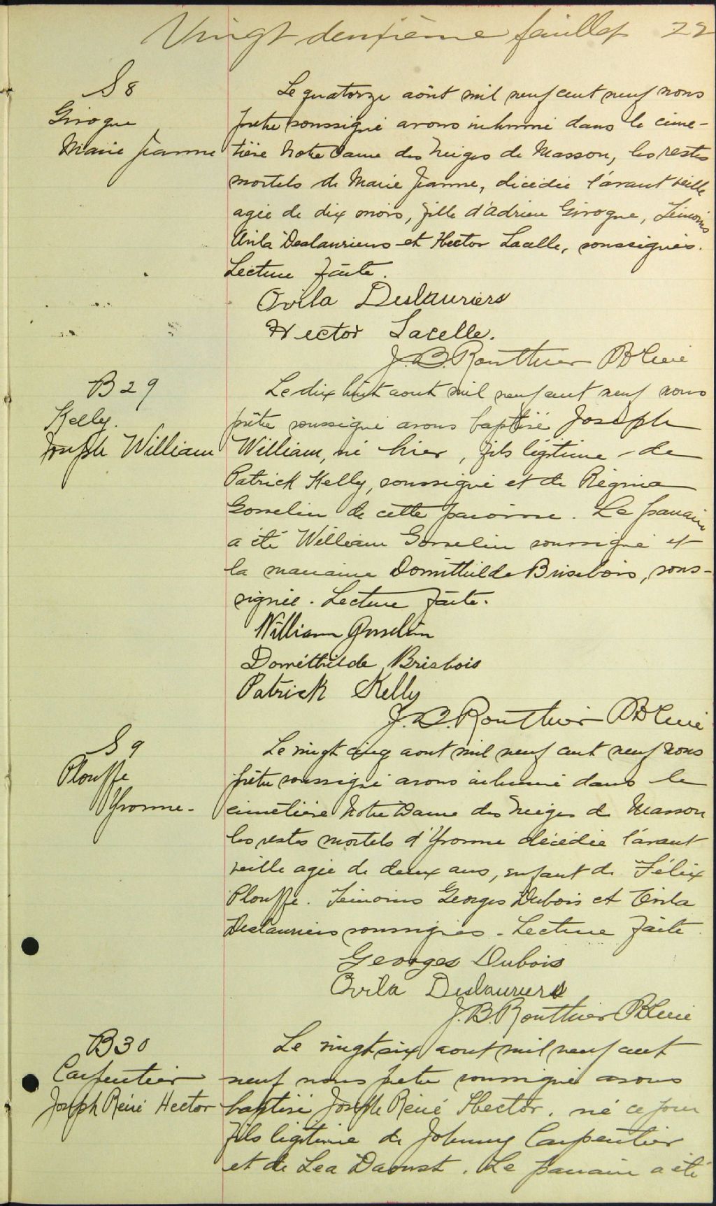Paroisse de la municipalité de Masson. Curés : Jean-Baptiste Routhier (1898-1921)