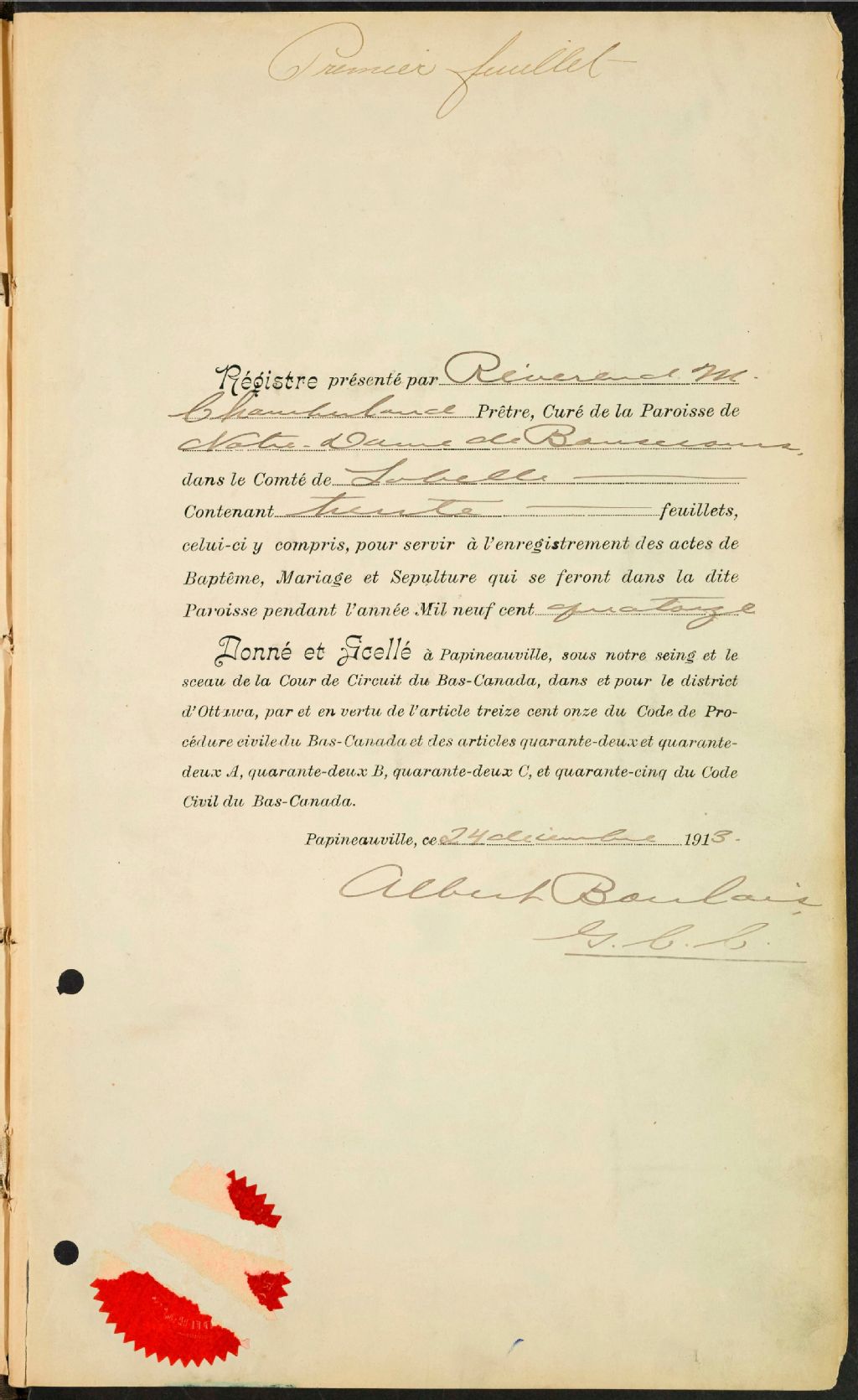 Notre-Dame-de-Bon-Secours, 1900-1921, Archives nationales à Gatineau, Fonds Cour supérieure. District judiciaire de Hull. État civil, (07H,CE701,S27).