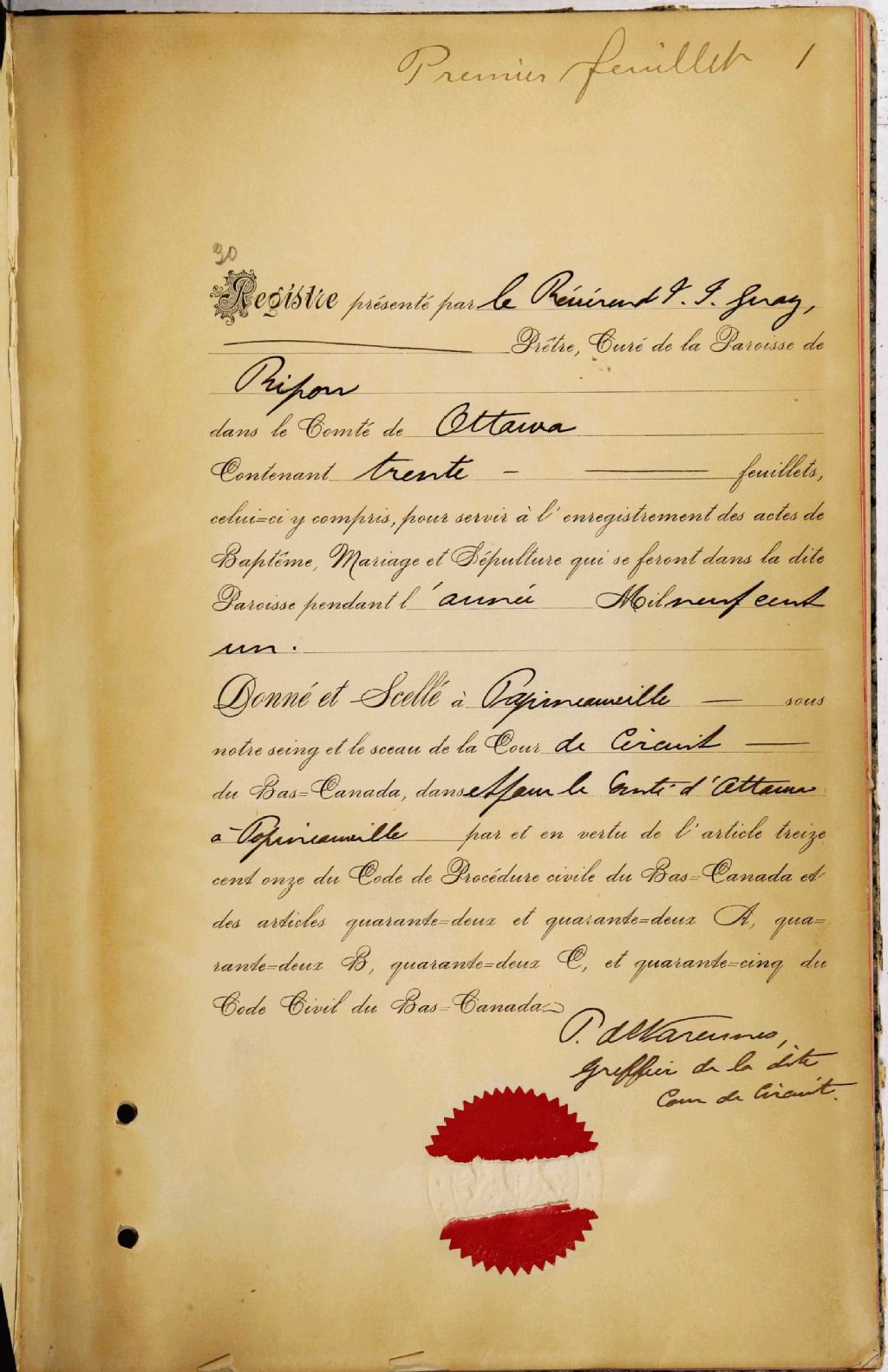 Saint-Casimir-de-Ripon, 1899-1921, Archives nationales à Gatineau, Fonds Cour supérieure. District judiciaire de Hull. État civil, (07H,CE701,S3).