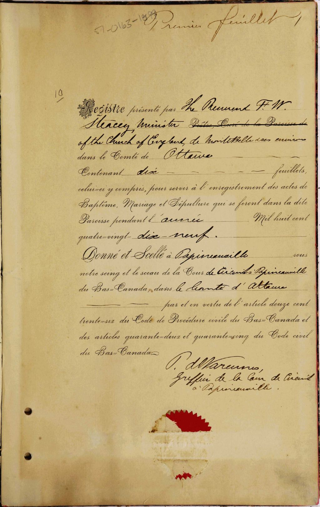 Montebello et vicinity Church of England, 1899-1921, Archives nationales à Gatineau, Fonds Cour supérieure. District judiciaire de Hull. État civil, (07H,CE701,S49).