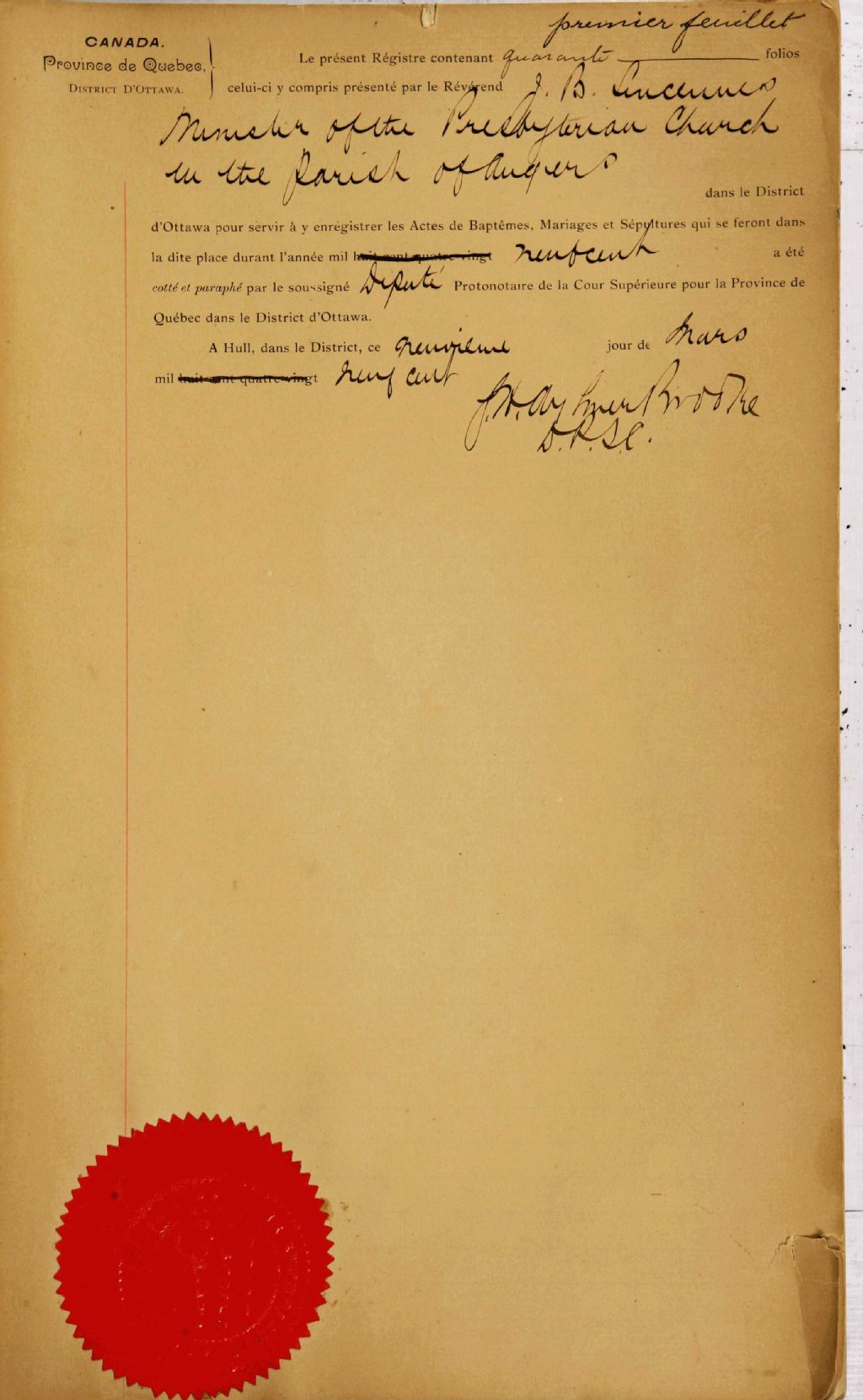 Angers Presbyterian Church, 1900-1910, 1912-1918, Archives nationales à Gatineau, Fonds Cour supérieure. District judiciaire de Hull. État civil, (07H,CE701,S57).