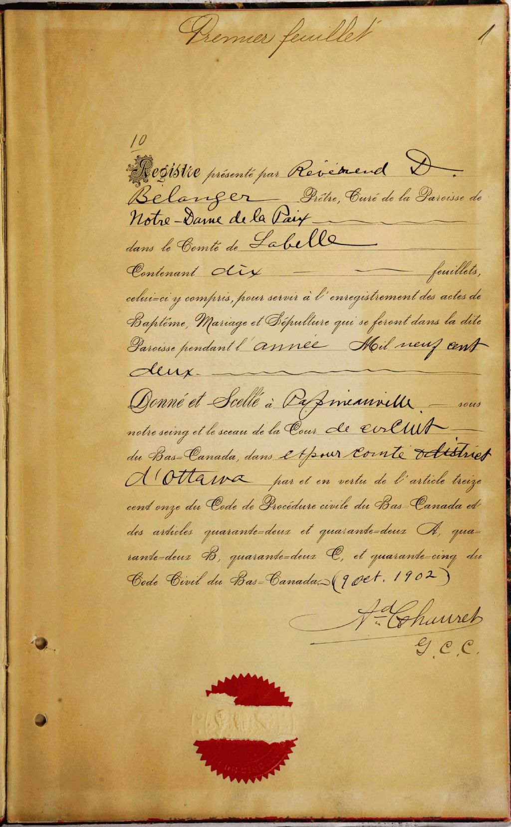 Notre-Dame-de-la-Paix, 1902-1922, Archives nationales à Gatineau, Fonds Cour supérieure. District judiciaire de Hull. État civil, (07H,CE701,S7).
