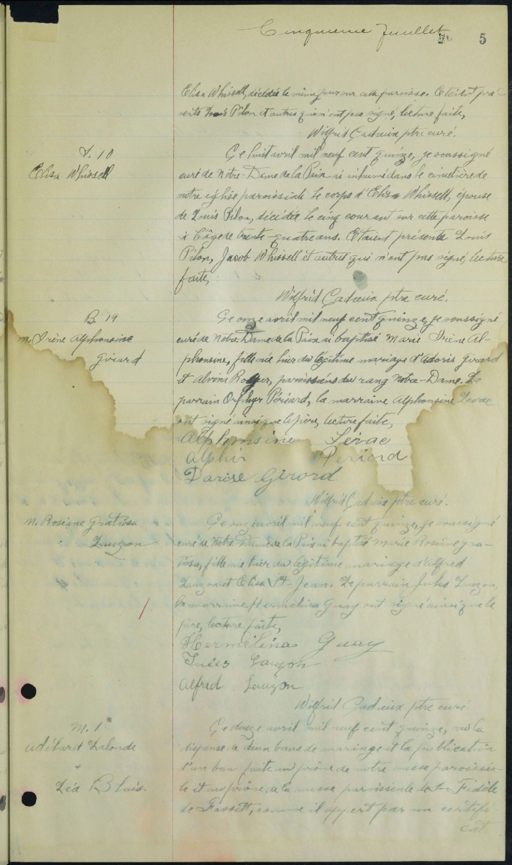 Notre-Dame-de-la-Paix, 1902-1921, Archives nationales à Gatineau, Fonds Cour supérieure. District judiciaire de Hull. État civil, (07H,CE701,S7).
