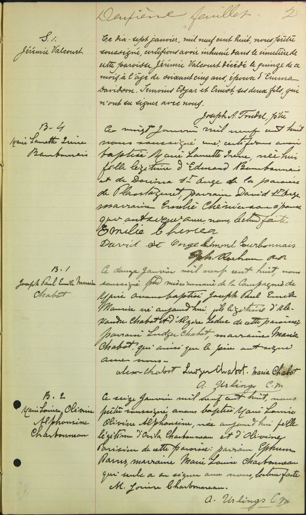 Sainte-Angélique, 1899-1921, Archives nationales à Gatineau, Fonds Cour supérieure. District judiciaire de Hull. État civil, (07H,CE701,S9).