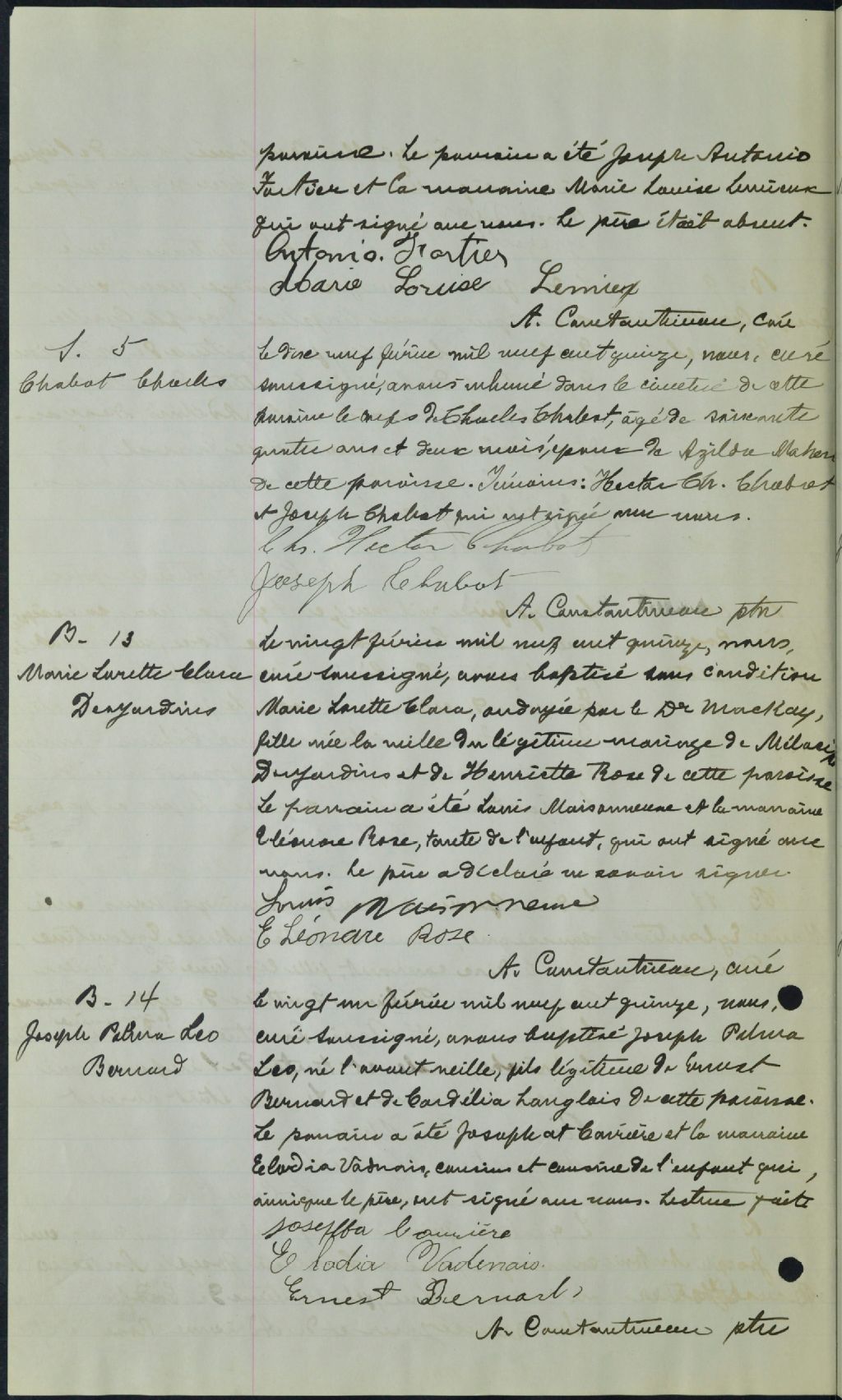 Sainte-Angélique, 1899-1921, Archives nationales à Gatineau, Fonds Cour supérieure. District judiciaire de Hull. État civil, (07H,CE701,S9).