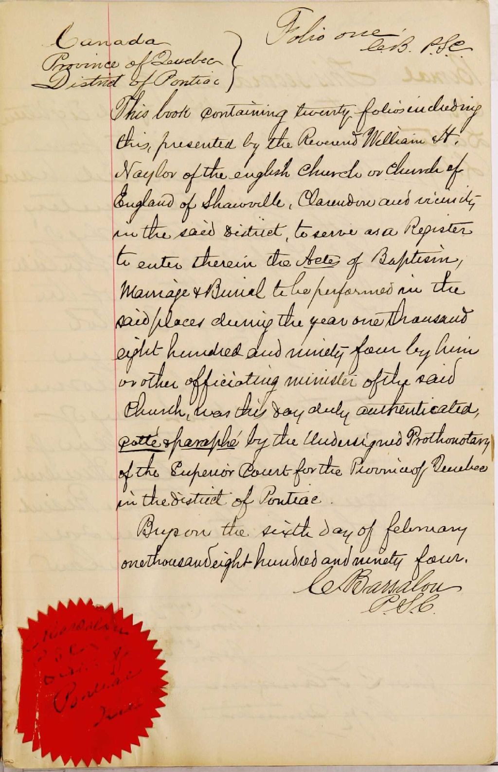 Saint Paul's Anglican Church of England, 1894-1921, Archives nationales à Gatineau, Fonds Cour supérieure. District judiciaire de Pontiac. État civil, (07H,CE702,S10).