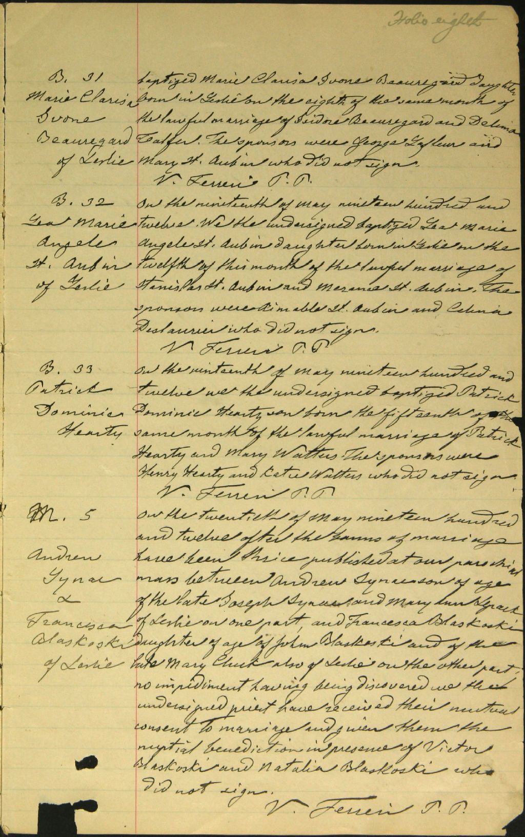 Sainte-Élizabeth-de-Vinton, 1894-1921, Archives nationales à Gatineau, Fonds Cour supérieure. District judiciaire de Pontiac. État civil, (07H,CE702,S6).