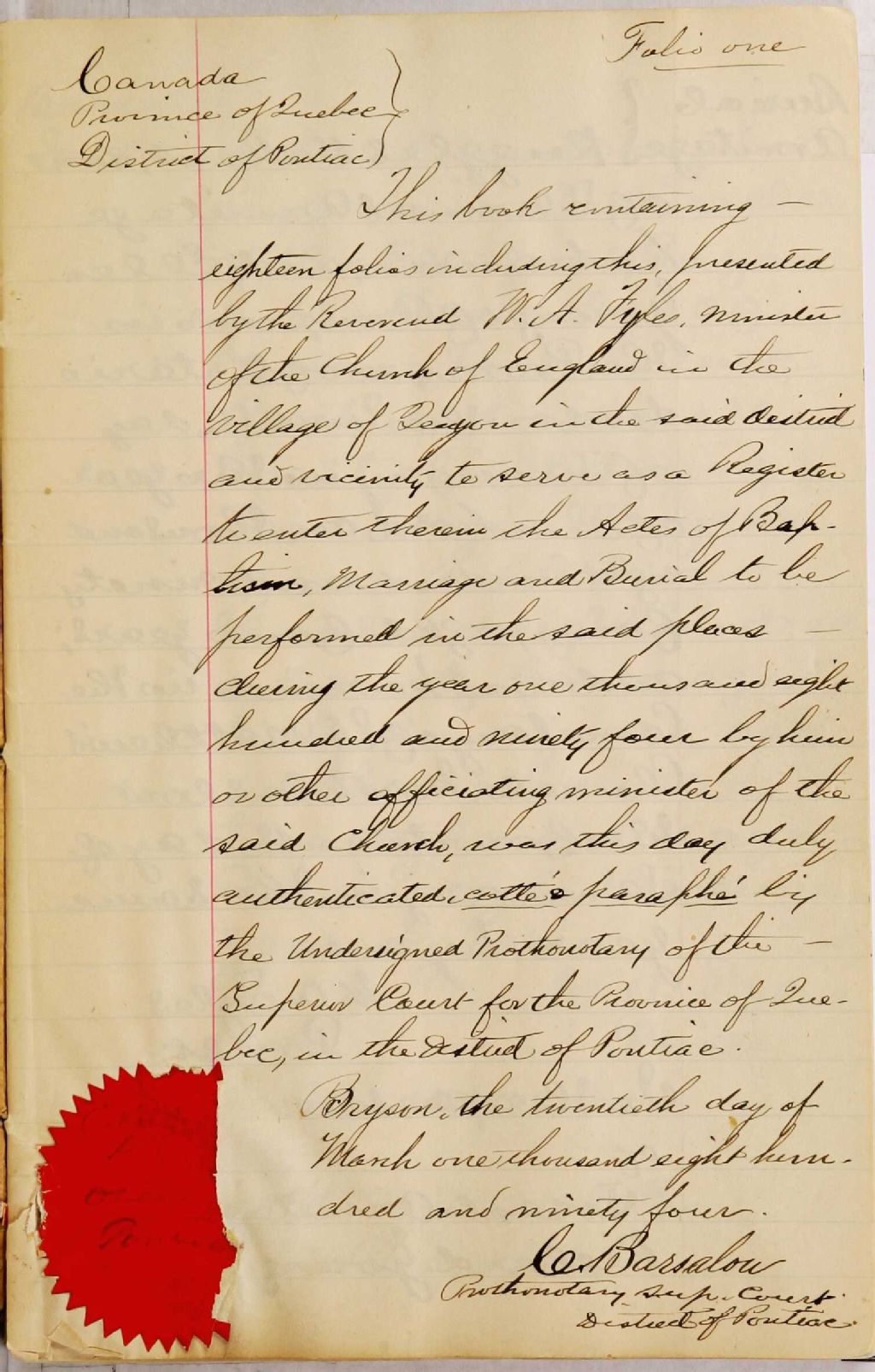 Saint John's Evangelist Church of England, 1894-1921, Archives nationales à Gatineau, Fonds Cour supérieure. District judiciaire de Pontiac. État civil, (07H,CE702,S9).