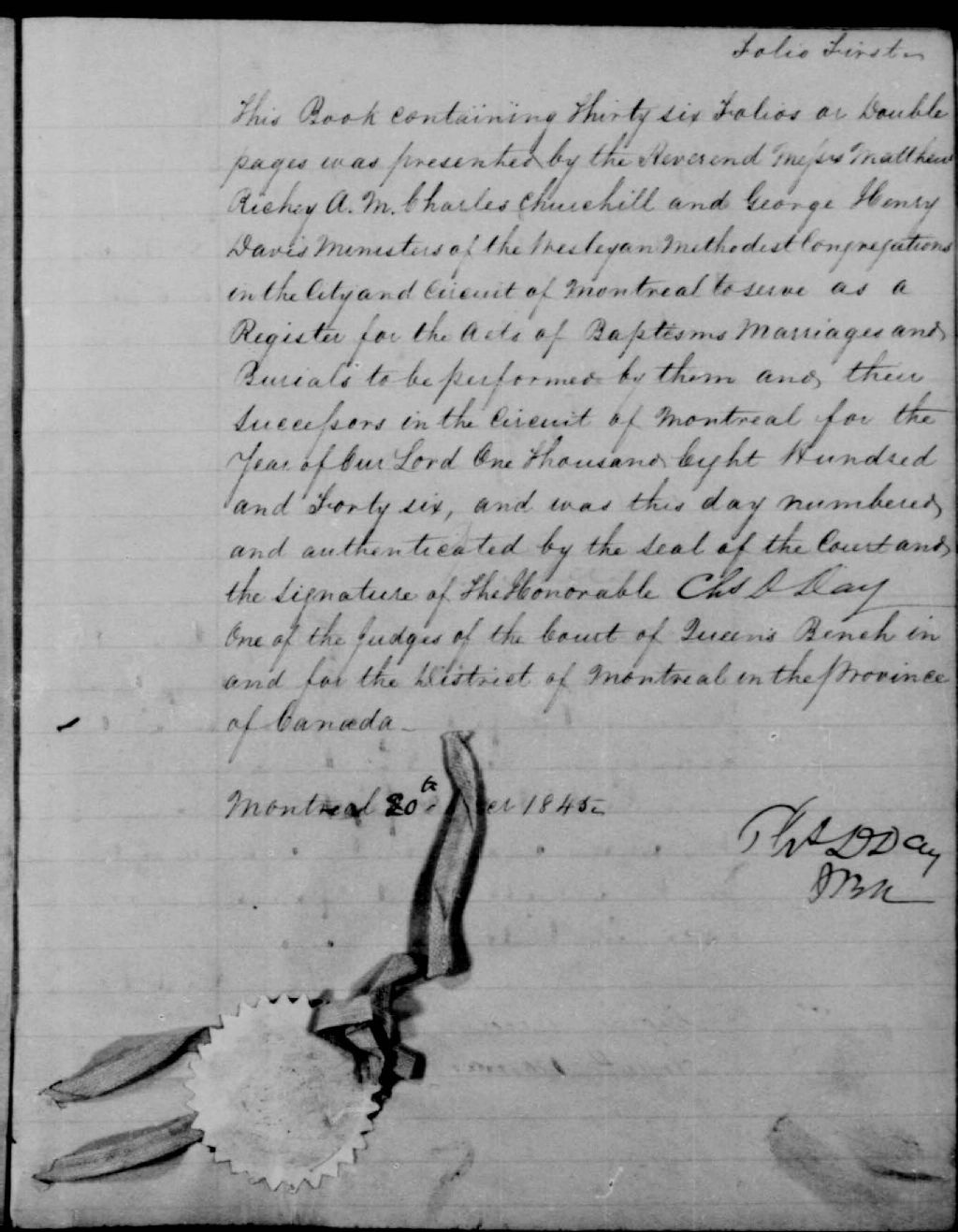 East End Methodist Church, 1846-1922, Archives nationales à Montréal, Fonds Cour supérieure. District judiciaire de Montréal. État civil, (06M,CE601,S102).