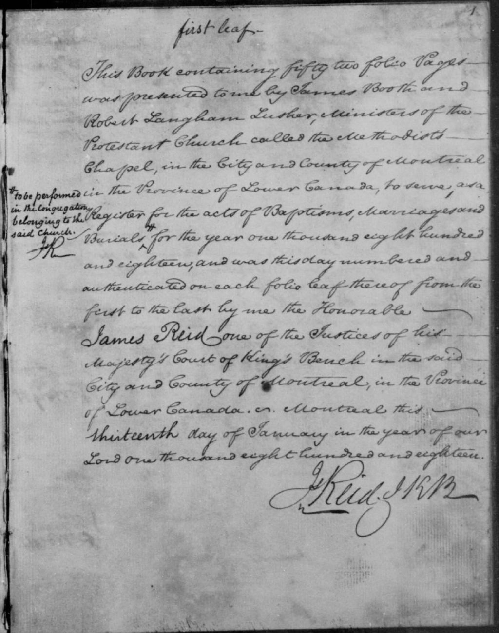 St. James's Methodist Church, 1818-1923, Archives nationales à Montréal, Fonds Cour supérieure. District judiciaire de Montréal. État civil, (06M,CE601,S109).