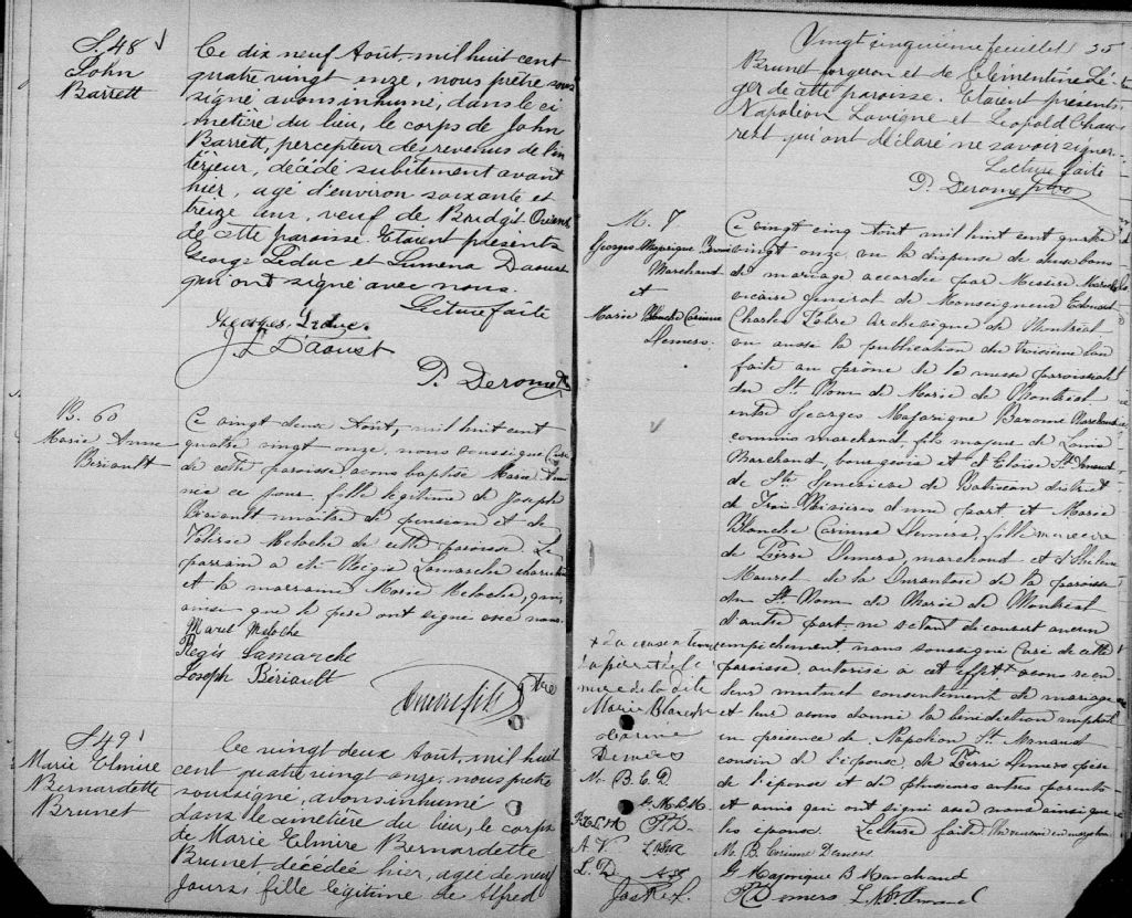 Sainte-Anne-du-Bout-de-l'Île, 1703-1922, Archives nationales à Montréal, Fonds Cour supérieure. District judiciaire de Montréal. État civil, (06M,CE601,S11).