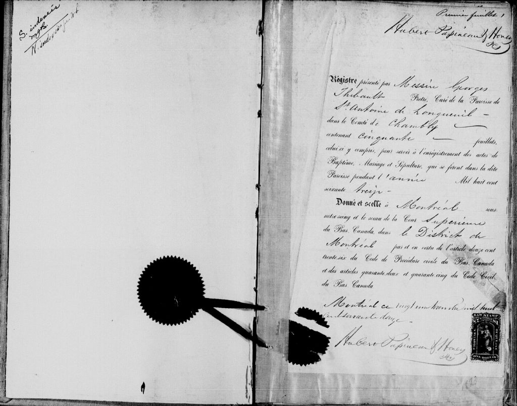 Saint-Antoine-de-Longueuil, 1669-1922, Archives nationales à Montréal, Fonds Cour supérieure. District judiciaire de Montréal. État civil, (06M,CE601,S12).