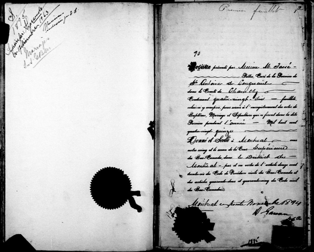 Saint-Antoine-de-Longueuil, 1669-1922, Archives nationales à Montréal, Fonds Cour supérieure. District judiciaire de Montréal. État civil, (06M,CE601,S12).