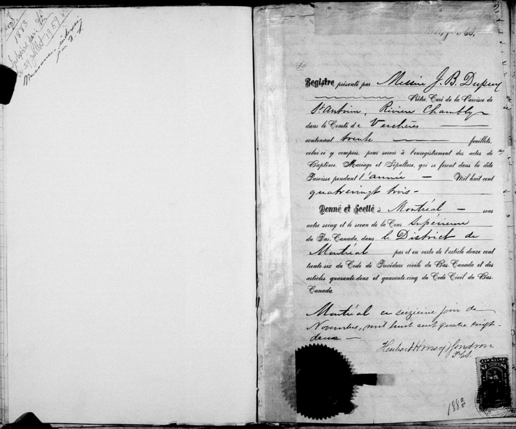 Saint-Antoine-de-Padoue, 1750-1922, Archives nationales à Montréal, Fonds Cour supérieure. District judiciaire de Montréal. État civil, (06M,CE601,S13).