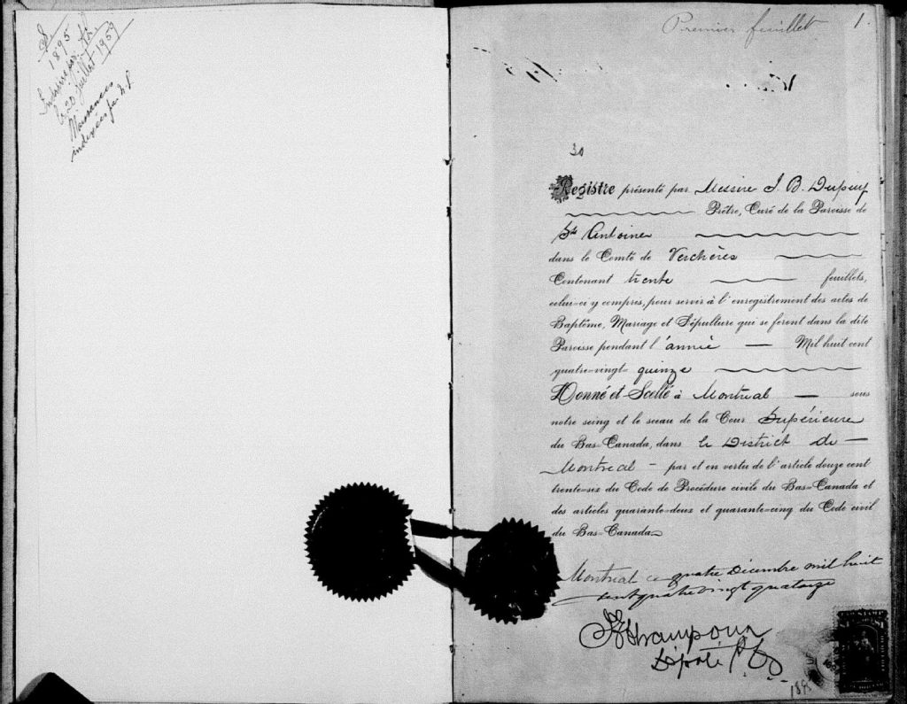 Saint-Antoine-de-Padoue, 1750-1922, Archives nationales à Montréal, Fonds Cour supérieure. District judiciaire de Montréal. État civil, (06M,CE601,S13).